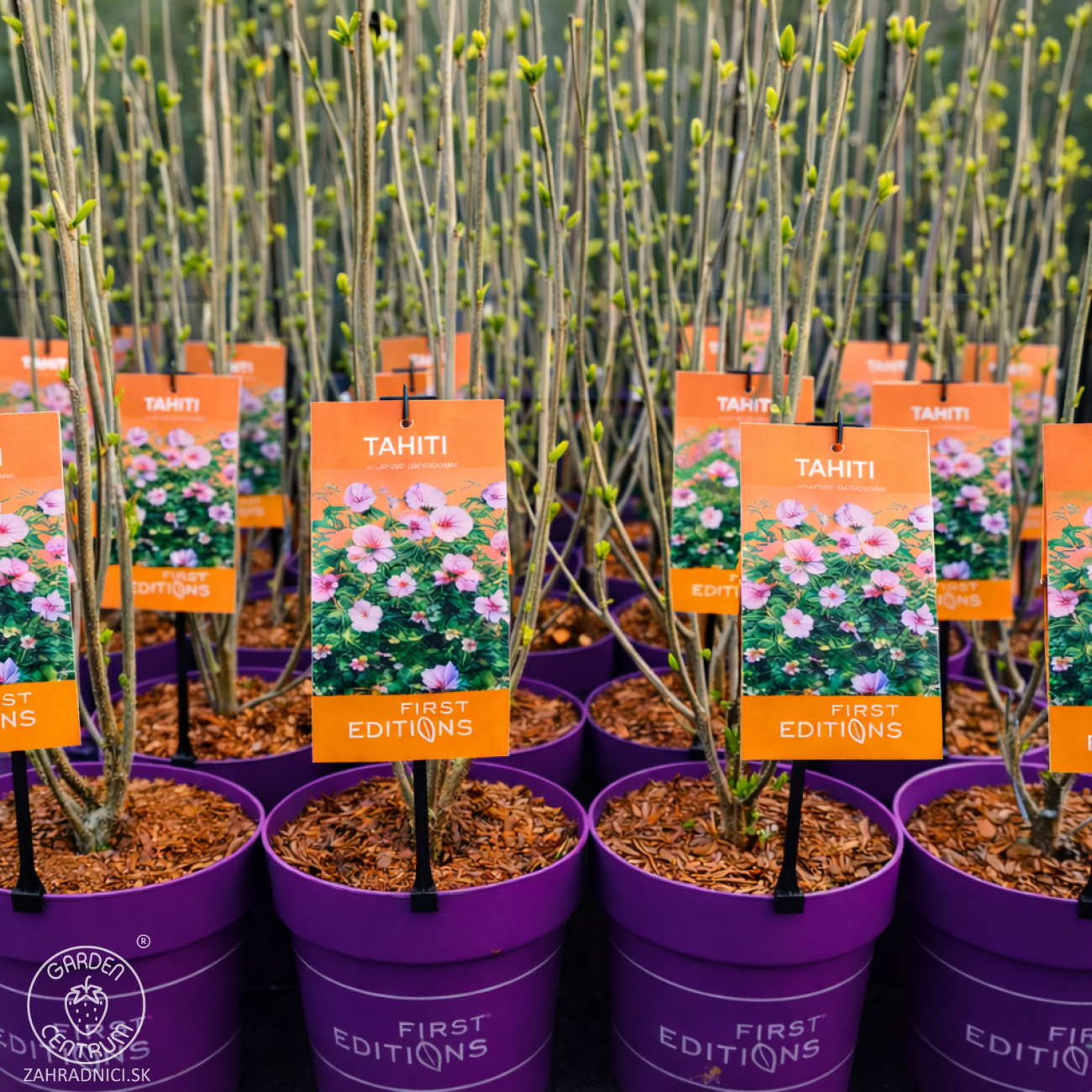Hibiscus syriacus ‘Tahiti’ je okrasný ker známy svojimi výraznými, plnými kvetmi s tropickým vzhľadom. Tento záhradný ibištek vyniká bohatým kvitnutím v období, keď väčšina rastlín už odkvitá. Je ideálny pre každého, kto hľadá nenáročnú, no efektnú rastlinu do záhrady.