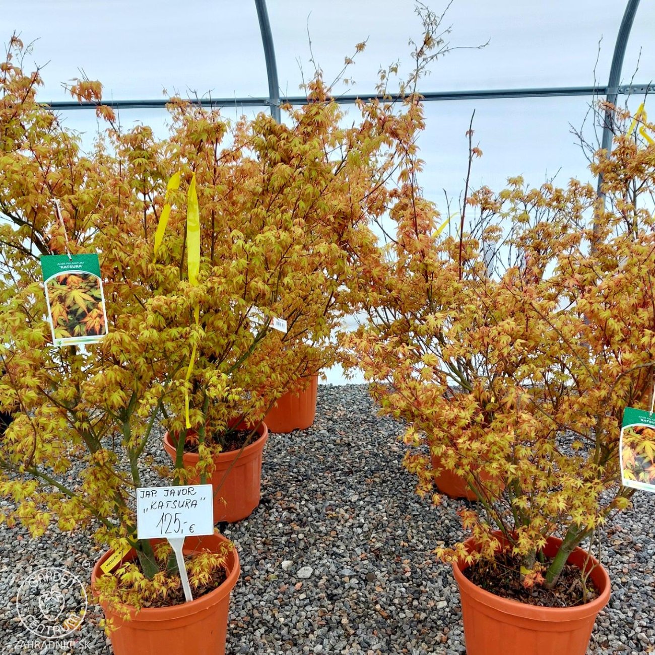 Javor dlaňolistý ´KATSURA´ je veľmi obľúbený japonský javor známy svojím nádherným jarným sfarbením. Pri rašení má listy žiarivo oranžové až žlto-marhuľové s jemným červeným okrajom, čo z neho robí jeden z najpôsobivejších kultivarov na začiatku sezóny. V lete prechádzajú do svetlozelenej farby a na jeseň sa opäť intenzívne vyfarbujú do zlatých až oranžových tónov.