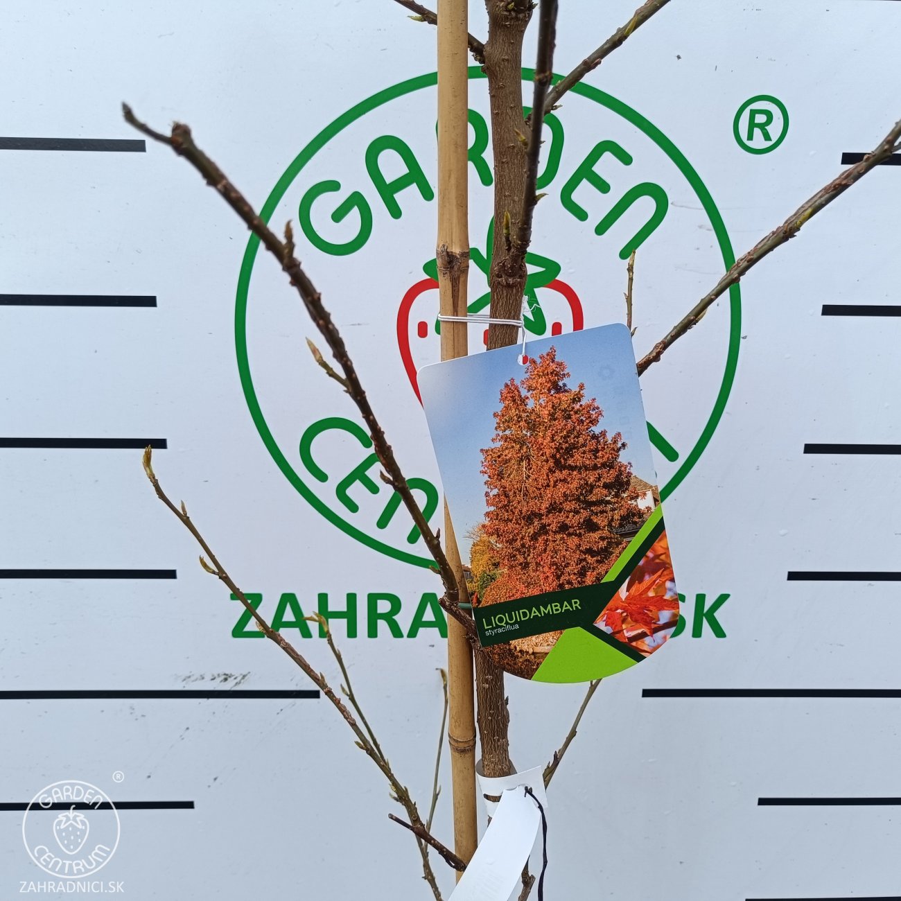 Liquidambar styraciflua je známy aj tým, že jeho kôra produkuje aromatickú živicu – tzv. storax, ktorá sa v minulosti využívala v parfumérii a medicíne. V záhradnej architektúre sa výborne kombinuje s okrasnými trávami, javormi alebo ihličnanmi, kde vynikne jeho jesenné sfarbenie. Vďaka svojmu tvaru a farebnosti je ideálny ako dominantný strom do moderných aj prírodne ladených záhrad, parkov či väčších výsadieb.