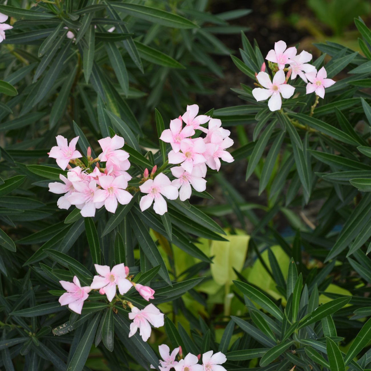 - Oleander Pink Delight kvitne najbohatšie na plnom slnku – čím viac svetla dostane, tým viac kvetov vytvorí.
