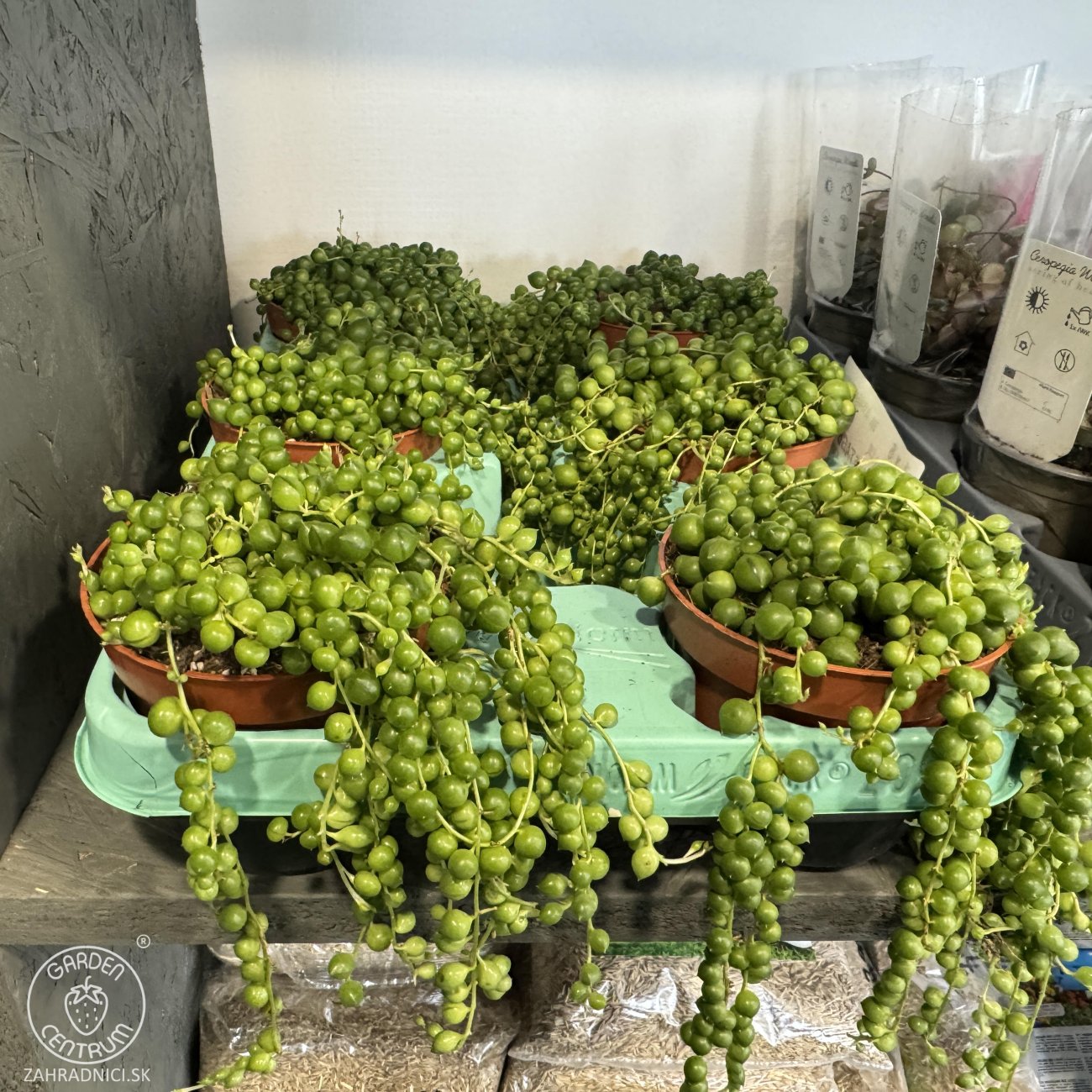 Starček, známy aj ako "rastlina perlový náhrdelník", je unikátna a očarujúca izbová rastlina, ktorá sa vyznačuje svojimi dlhými, previsnutými stonkami posiatymi guľatými listami pripomínajúcimi korálky. Táto sukulentná rastlina je ideálna na pestovanie v závesných kvetináčoch, kde jej stonky môžu vytvárať kaskádovitý efekt. Senecio rowleyanus je nielen dekoratívny, ale aj nenáročný na starostlivosť, vďaka čomu je obľúbený medzi začínajúcimi aj skúsenými pestovateľmi. Obľubuje svetlé stanovisko, nie priame slnko. Toleruje suché prostredie, nevyžaduje vysokú vlhkosť. Je ideálnou voľbou pre moderné interiéry, kde prinesie dotyk originality a exotiky.