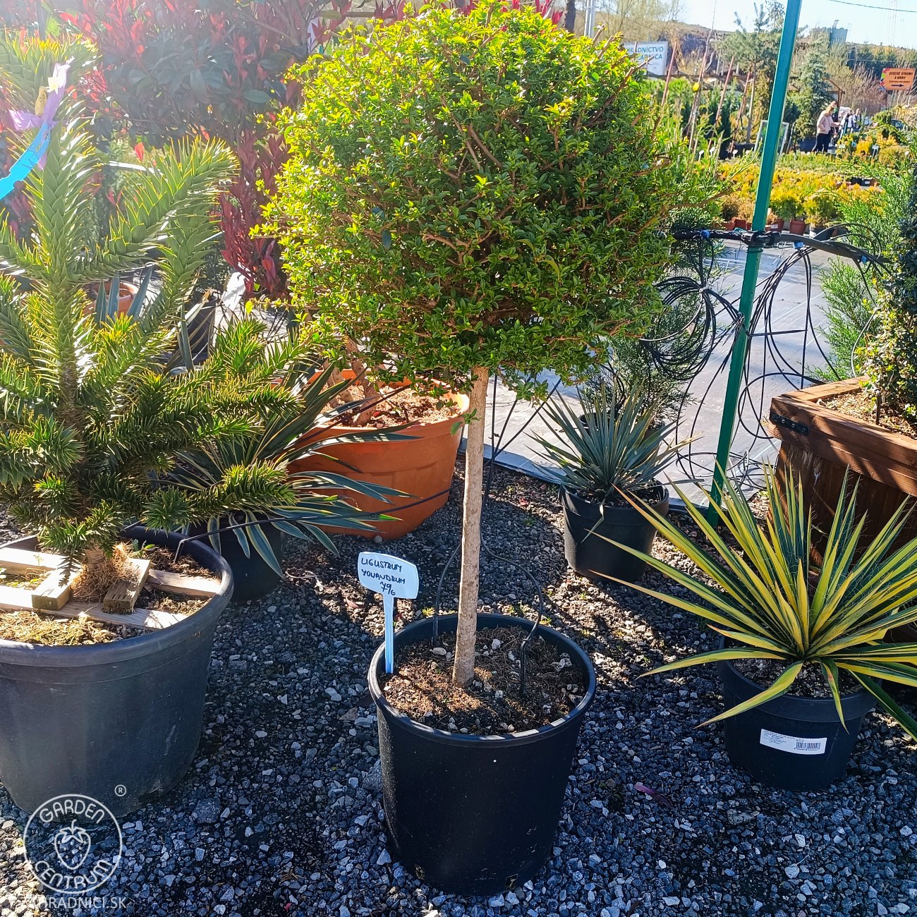 Vtáčí zob vždyzelený na kmienku v tvare gule je štýlový a veľmi obľúbený prvok moderných aj klasických záhrad. Vďaka svojmu upravenému vzhľadu pôsobí elegantne a okamžite dodá priestoru štruktúru a poriadok. Ide o ideálnu voľbu pre vstupy do domu, terasy či reprezentatívne časti záhrady. Ligustrum jonandrum v tejto forme vyniká najmä svojou kompaktnou korunou v tvare gule, ktorú je možné jednoducho udržiavať pravidelným rezom. Má drobné, lesklé listy sýtozelenej farby a pôsobí veľmi husto a upravene počas celého roka.