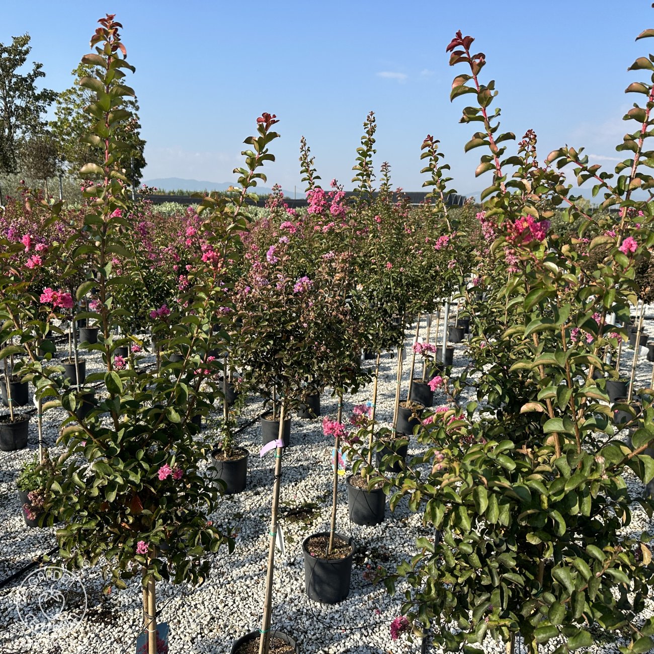 Myrta krepová 'ROSEA GRASSI' je očarujúca a dekoratívna odroda, ktorá zaujme najmä svojimi bohatými, jemne ružovými súkvetiami. Kvitne dlhé mesiace – od vrcholu leta až do jesene – a počas celej sezóny pôsobí mimoriadne atraktívne. Vysadená na kmienku vytvára elegantný, menší stromček s prirodzene zaoblenou, vzdušnou korunou, ktorá si pri pravidelnom reze udržiava pekný tvar a hustotu. Listy sú sviežo zelené, na jeseň prechádzajú do odtieňov oranžovej a červenej, čím dodávajú rastline výrazný efekt aj mimo obdobia kvitnutia.