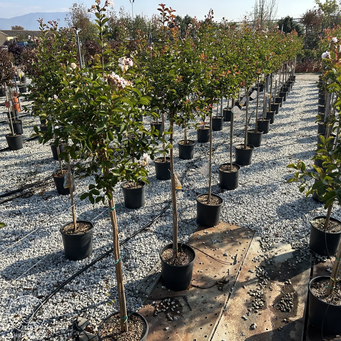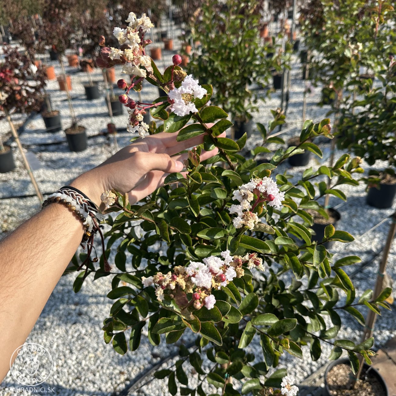 Myrta krepová ´BIANCO GRASSI´ je pôsobivá, bohato kvitnúca drevina, ktorá patrí medzi najkrajšie kultivary svojho druhu. Počas leta až do jesene vytvára veľké množstvo jemných, bielych kvetov, ktoré jej dodávajú jemný a elegantný vzhľad. Tento druh na kmienku rastie ako stromček s prirodzene zaoblenou, vzdušnou korunou. Listy sú počas sezóny sviežo zelené a na jeseň sa sfarbujú do atraktívnych oranžových až červených tónov, takže rastlina pôsobí dekoratívne aj mimo obdobia kvitnutia. Rovnako ako ostatné myrty, aj ´BIANCO GRASSI´ uprednostňuje slnečné, teplé a dobre chránené stanovisko. Najlepšie výsledky dosahuje v mierne kyslej, priepustnej pôde, ktorá zadrží dostatok vlahy, no nezostáva príliš mokrá. Tento kultivar je vyšľachtený s dôrazom na lepšiu odolnosť voči chladu, takže pri správnom mieste výsadby a primeranej zimnej ochrane zvládne pestovanie aj v našich klimatických podmienkach.