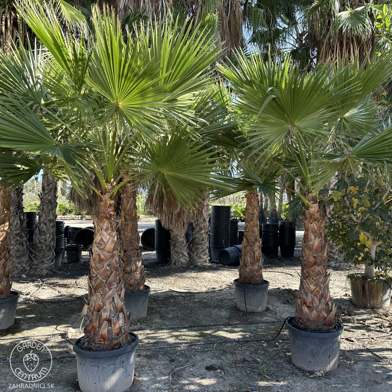 Palma vláknitá (Washingtonia filifera) – výška kmeňa: 150 cm, celková výška: 280-300 cm, kont. C70L (-10°C)