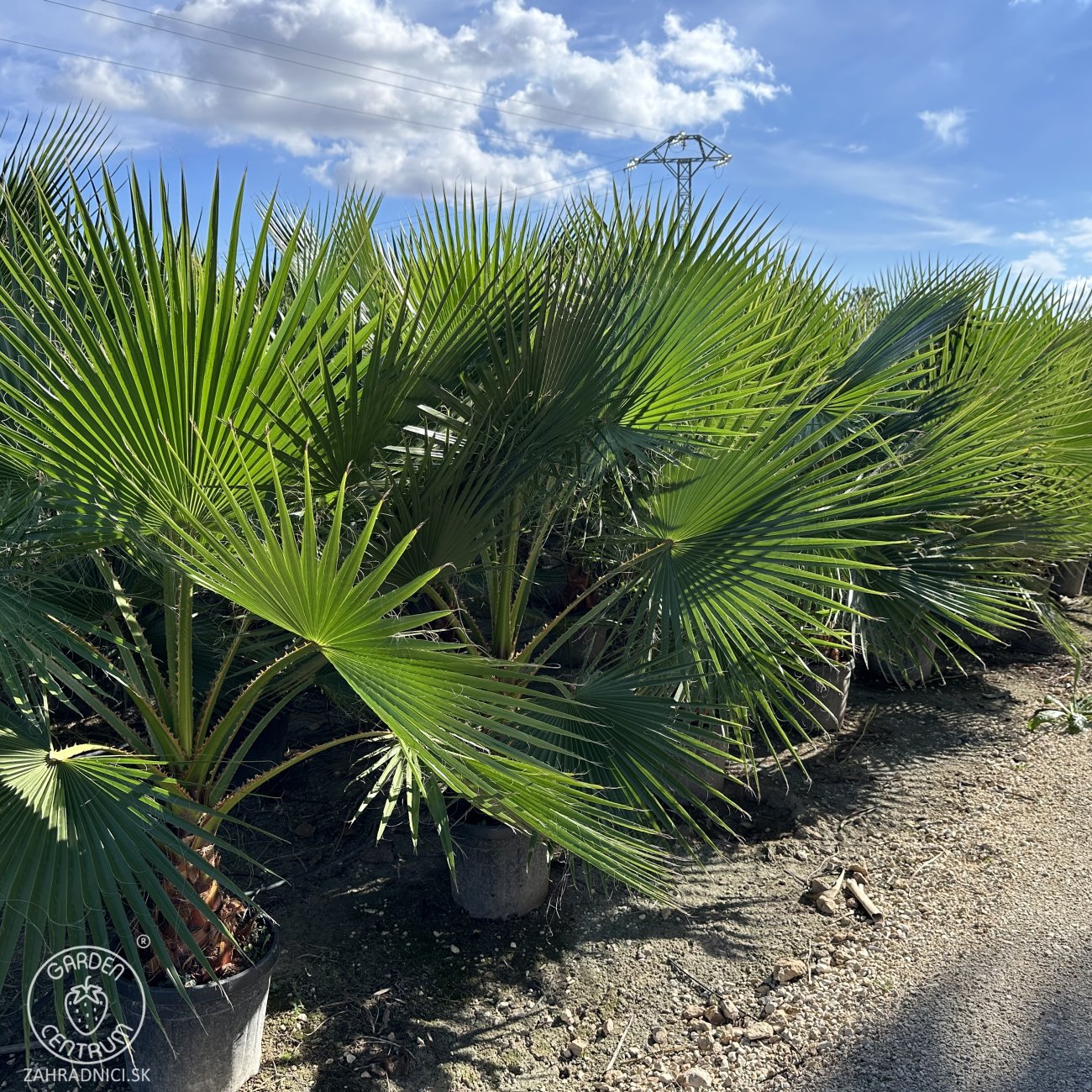 Palma vláknitá (Washingtonia filifera) – výška kmeňa: 30-40 cm, celková výška: 150-180 cm, kont. C30L (-10°C)