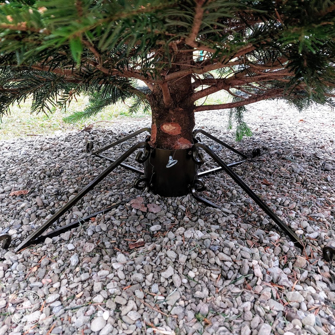 Mohutný, ručne robený stojan pre pevné upevnenie rezaného vianočného stromčeka. Stromček sa dá bezpečne upevniť pomocou 3 skrutiek, ktoré sa uťahujú podľa potreby a veľkosti kmeňa.