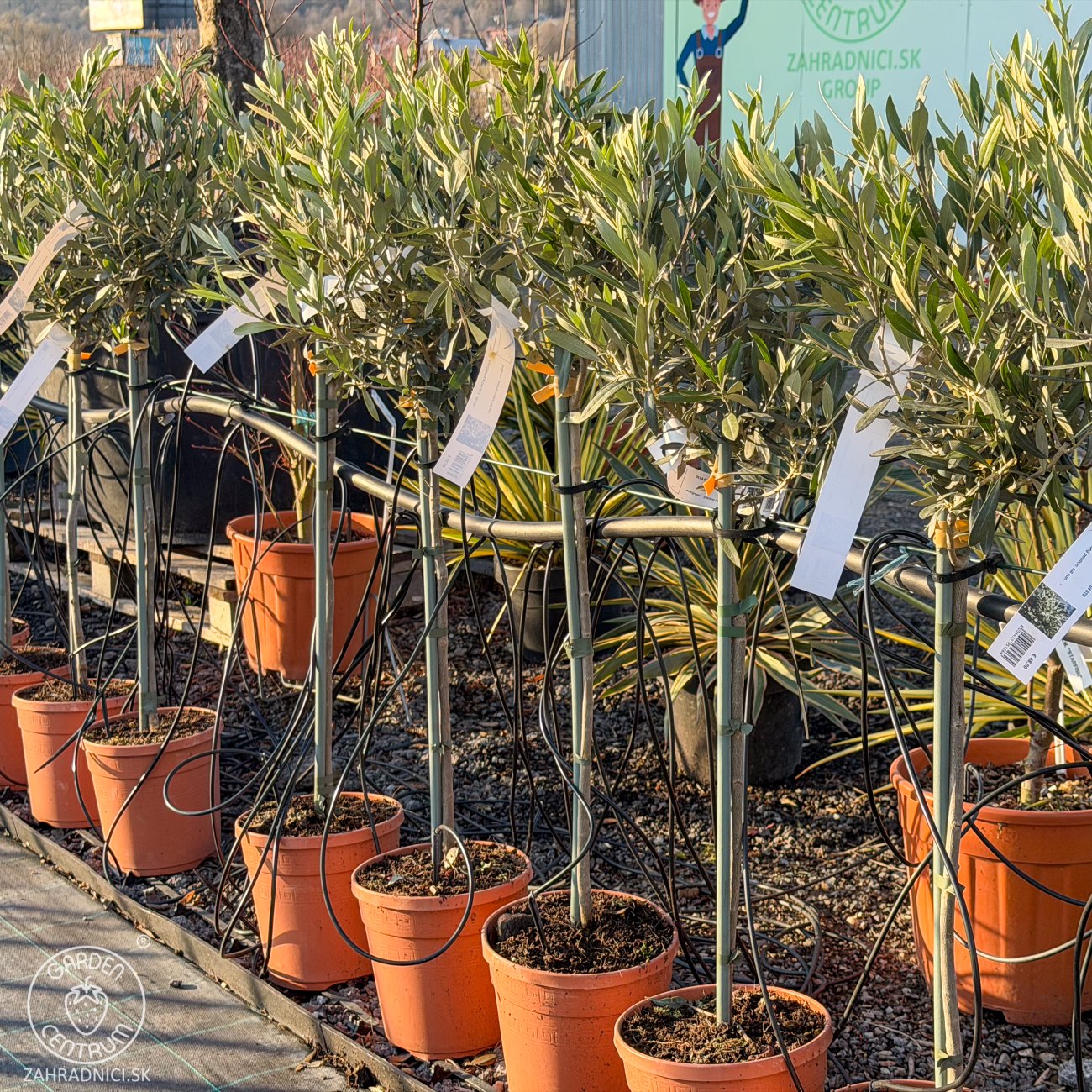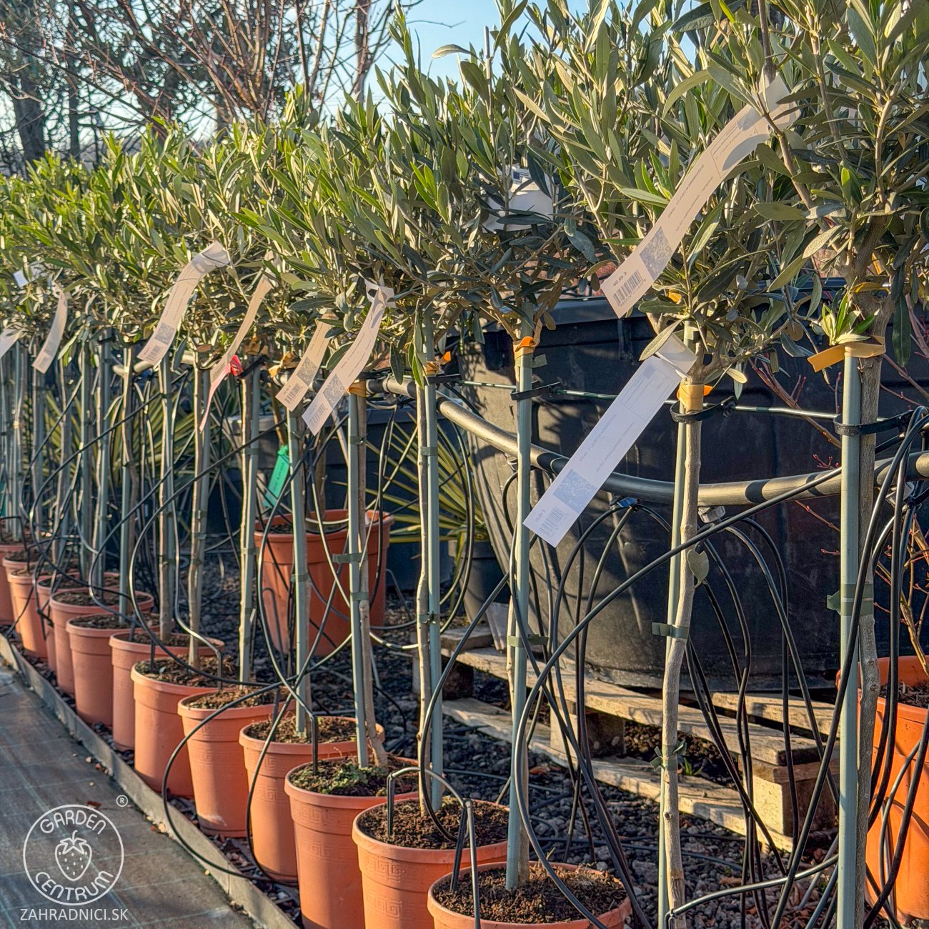 Olivovník na kmienku je tvarovaný do stromčekovej formy s pravidelnou korunou, ktorá pôsobí veľmi elegantne a upravene. Ide o ideálny solitér do nádob, ktorý okamžite dodá terase, balkónu či záhrade stredomorský charakter a luxusný vzhľad.