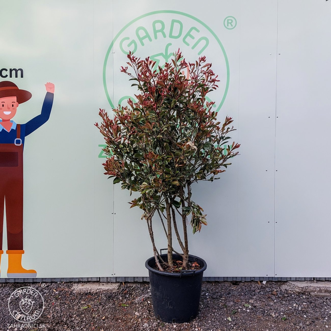 Photinia x fraseri 'MCLARLOU LOUISE' je mimoriadne dekoratívna, vždyzelená odroda, ktorá vyniká výrazne panašovanými listami a elegantným vzhľadom počas celého roka. Mladé výhonky majú jemné ružové až lososové sfarbenie, ktoré postupne prechádza do sýtozelenej farby s krémovo bielym okrajom, čím vytvára veľmi atraktívny farebný kontrast. Rast je stredne rýchly a prirodzene kompaktný, v dospelosti dorastá približne do výšky 3-5 metrov, pričom dobre znáša tvarovací aj udržiavací rez. Na jar môže zakvitnúť drobnými bielymi kvetmi v súkvetiach, ktoré dopĺňajú celkový dekoratívny efekt, hoci hlavnou ozdobou zostáva list. Najlepšie sa jej darí na slnečnom až polotienistom stanovisku, kde je vyfarbenie listov najintenzívnejšie, v priepustnej a výživnej pôde s dostatkom vlahy. Je mrazuvzdorná, no v chladnejších oblastiach sa odporúča chránené miesto. Červienka viackmenná ´McLarlou Louise´ je ideálna ako reprezentatívny solitér, do živých plotov, moderných záhrad alebo do kvetináča, kde vynikne svojím luxusným, farebným a celoročným efektom.