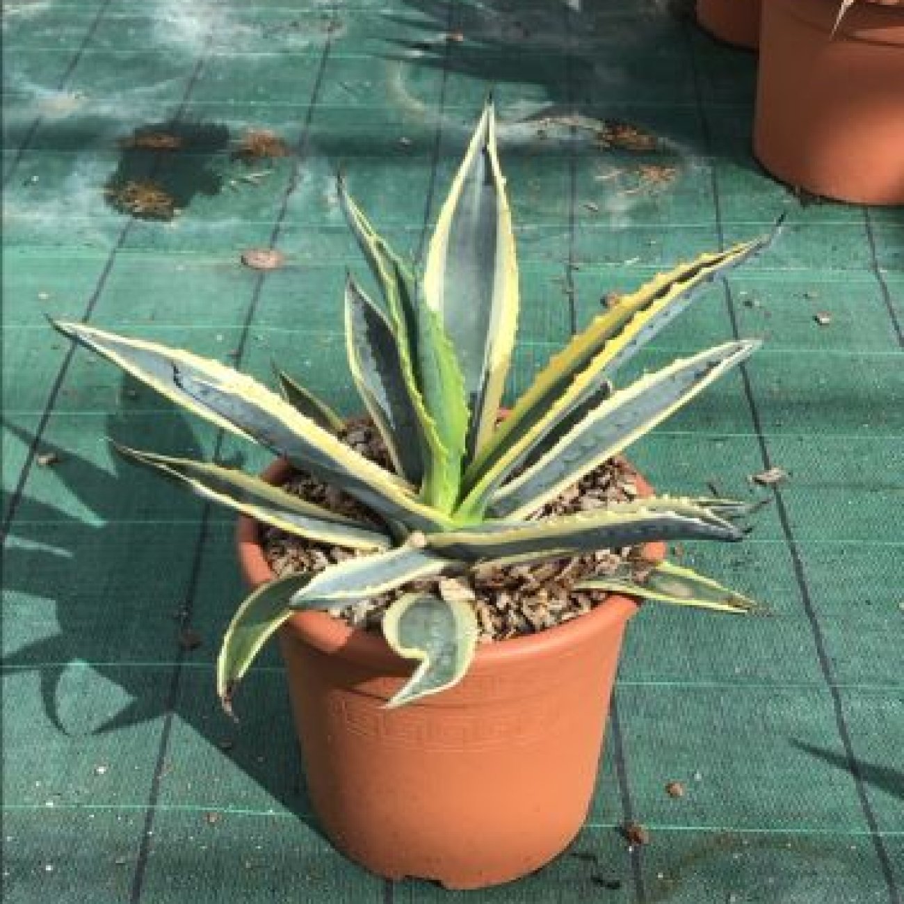 Agáva americká ´VARIEGATA´ pochádza z Mexika. Je to vždyzelená trvalka, ktorá vytvára nádherné ružice hustých, ostrohranných, šedo-zelených listov. Každý list má výrazný, krémovo-biely stredový pruh. Mäsité listy sú po okrajoch vyzbrojené zakrivenými ostňami. Rastlina v dospelosti (10 až 20-ty rok) kvitne pôvabnými, veľkými, žlto-zelenými kvetmi. Po odkvitnutí rastlina umiera. Agáve sa najlepšie pestuje v mierne kyslých, piesočnatých, kamenistých a dobre priepustných pôdach. Ideálne je slnečné stanovisko alebo svetlý polotieň. Agáve je rastlina, ktorá si vo svojich pevných listoch dokáže vytvoriť dostatočné zásoby vody. Príliš bohatá zálievka je teda skôr na škodu. Agávu stačí výdatnejšie poliať raz za dva týždne, aby nabrala vlahu do svojich listov a hospodárila s ňou zasa počas ďalších, suchých dní.