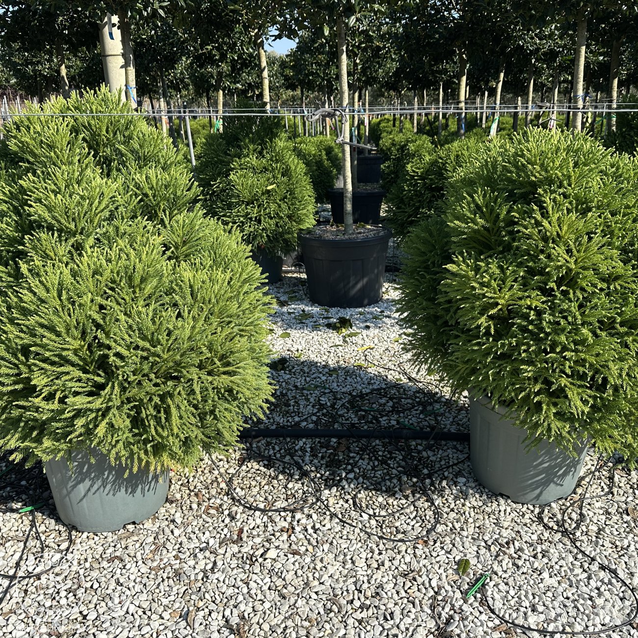 Cryptomeria japonica ´Globosa Nana´ je obľúbená trpasličia forma japonskej kryptomérie, ktorá vyniká hustým, prirodzene guľovitým tvarom bez potreby pravidelného strihu. Patrí medzi najkrajšie nízke ihličnany, ideálne do moderných aj japonských záhrad. Rastlina tvorí mimoriadne husté, mäkké a jemné ihličie, ktoré je spočiatku svetlozelené a v priebehu sezóny získava sýtejší odtieň. V zime sa môže zafarbiť do bronzovo-hnedastých tónov, čo rastline dodáva sezónny dekoratívny efekt. Vďaka pomalému rastu si zachováva kompaktný vzhľad po dlhé roky.