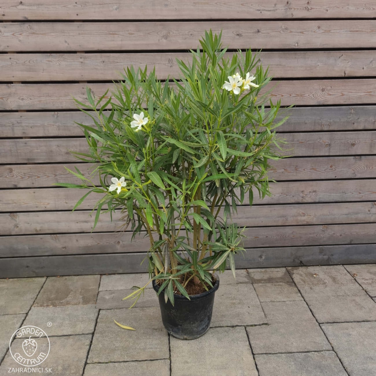 Oleander obyčajný ´SNOW WHITE´ krásne kvitne bielymi kvetmi, príjemne vonia a v našich klimatických podmienkach je ideálny na pestovanie v nádobách, na balkónoch či terasách. Listy sú úzke, kožovité a tmavozelené. Nerium oleander ´SNOW WHITE´ vyžaduje slnečné stanovisko, ideálne vo väčších nádobách s dobrou drenážou.