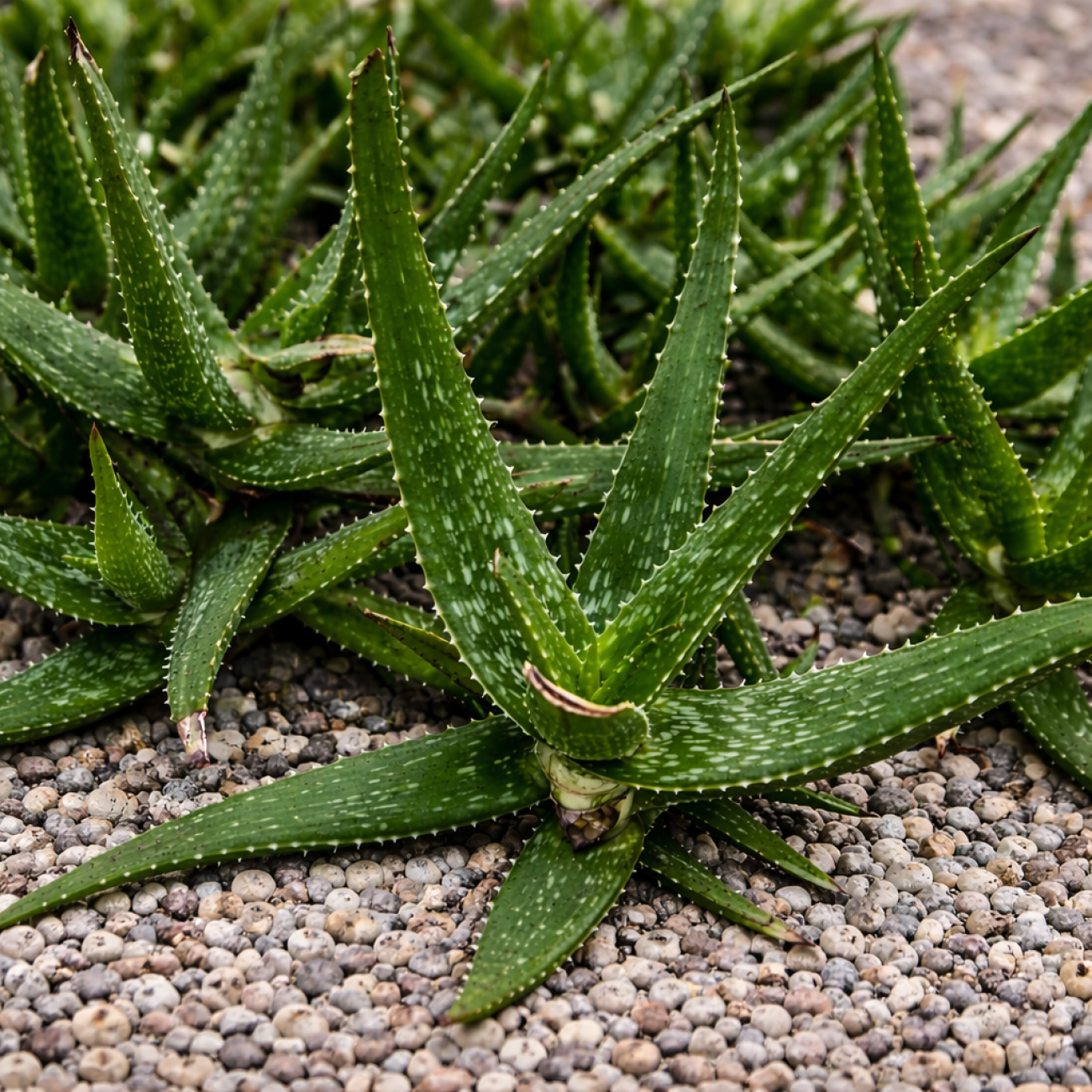 Aloe mitriformis je atraktívna druhová aloe s pevnými, mäsitými listami usporiadanými do kompaktných ružíc. Listy sú sýtozelené s jemnými svetlými bodkami a drobnými zúbkami na okrajoch, vďaka čomu pôsobí rastlina výrazne dekoratívne a moderne.