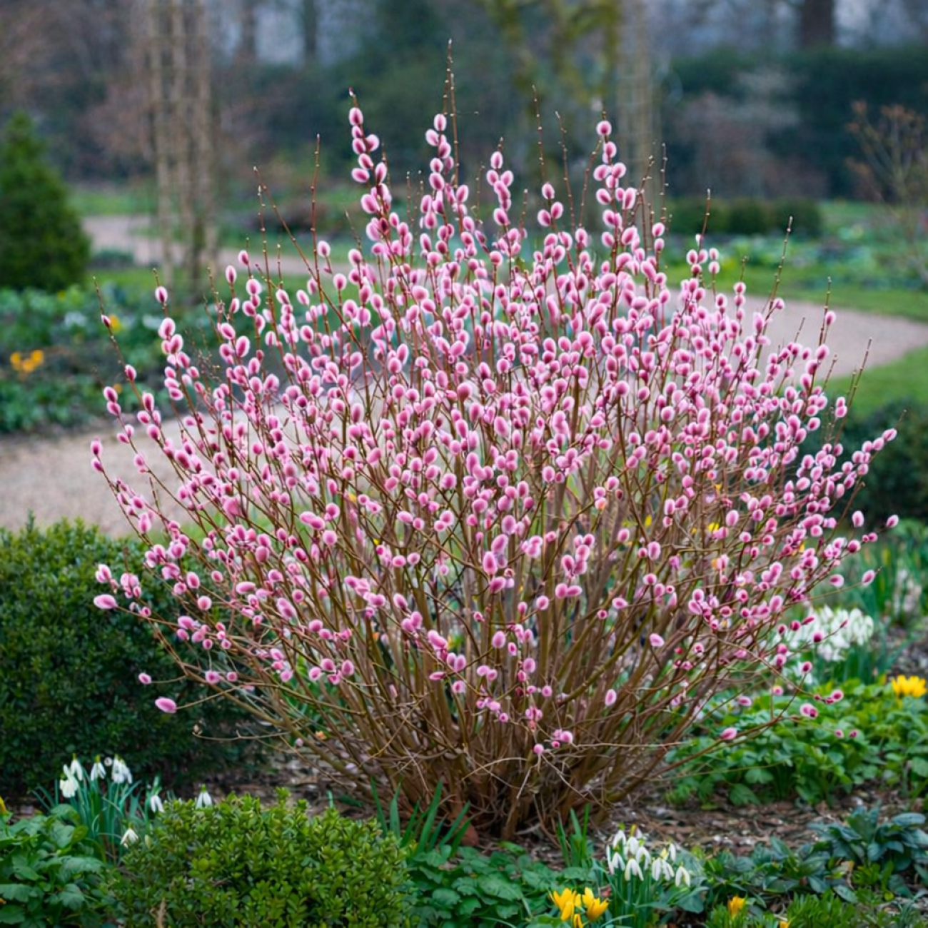 Vŕba štíhlopestíková ´MOUNT ASO´® je výnimočná jarná drevina, ktorá okamžite upúta pozornosť svojimi veľkými, sýtoružovými jahňadami. Táto moderná odroda prináša do záhrady výraznú farbu už veľmi skoro na jar, ešte pred plným olistením.