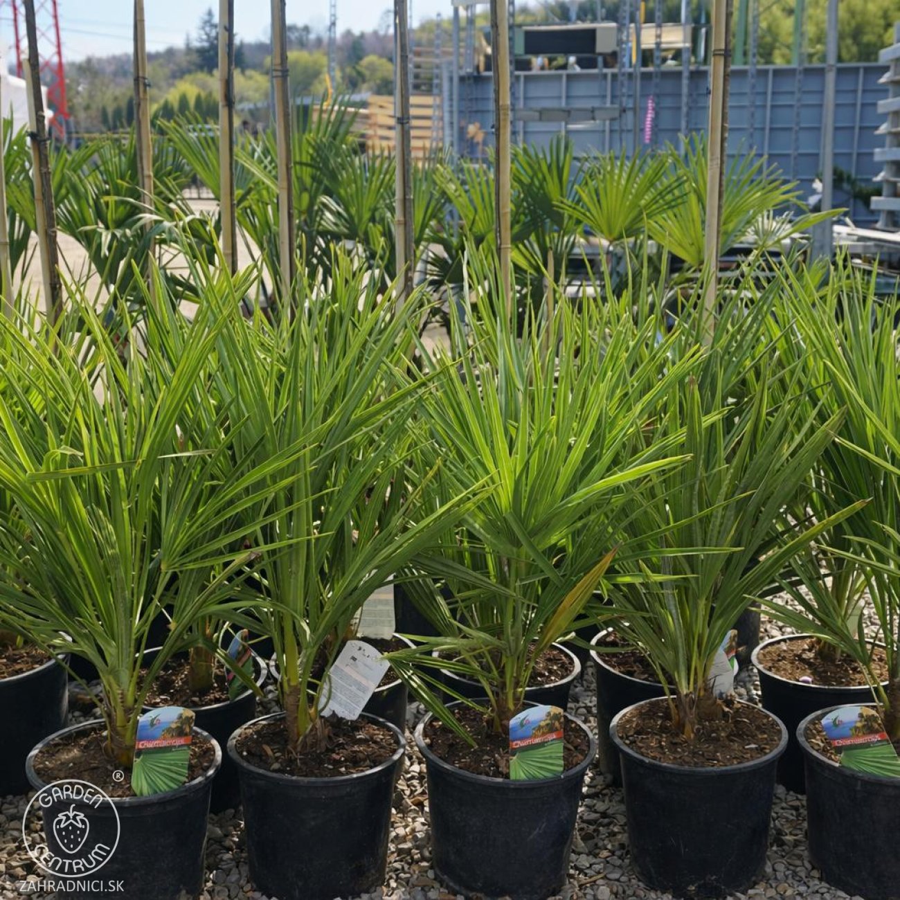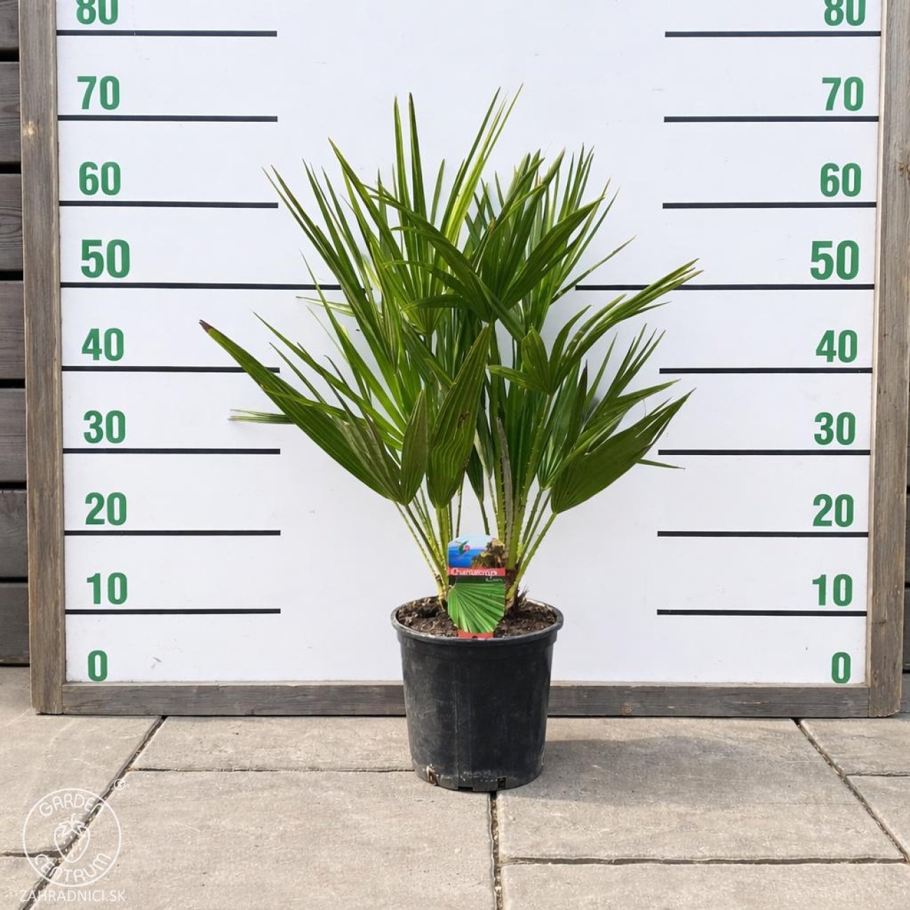 Chamaerops humilis je nazývaná aj ako ´trpasličia´ palma. Táto palma je jediná, pôvodom európska. V hojných počtoch ju môžeme vidieť rásť po celom stredomorí, kde je veľmi obľúbená najmä pre svoj krásny exotický vzhľad, veľkú suchomilnosť a nenáročnosť pri pestovaní. Má vejárovité, modrozelené listy. Táto palma kvitne v prvých rokoch života a vytvára veľké žlté súkvetia, neskôr oranžové plody. Palma je mrazuvzdorná do -14°C. Najväčším predpokladom na bezproblémové prezimovanie je kvalitný zimný zábal a spoľahlivé vetranie počas zimy v teplejších dňoch. Z vlastných skúsenosti vieme, že palme neuškodí tak veľmi silný mráz, ako nadmerná vlhkosť počas zimy a mrazivých dní. Pri zanedbanom vetraní rastlina často začína hniť. Tento druh palmy je známy pomalším rastom a rastie prevažne do šírky ako do výšky. Počas rastu vytvára viacero kmeňov a tým neskôr vzniká efektný exotický krík, alebo skupina niekoľkých paliem. Palmy je možné aj deliť a pestovať osobitne, avšak je to zložitejšie a treba dávať veľký pozor na zachovanie a nepoškodenie koreňov odnoží.