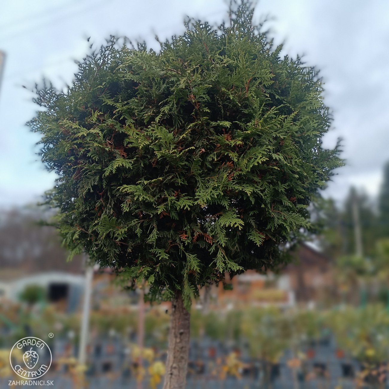 Elegantná forma obľúbenej tuje západnej, ktorá prinesie do záhrady dokonalú harmóniu a sviežu zeleň po celý rok. Tuja na kmienku vyniká hustým, sýtozeleným ihličím, pravidelným tvarom koruny a univerzálnym využitím – skvelo sa hodí ako solitér, do skupinových výsadieb či do veľkých nádob na terasu alebo pred vchod domu.
