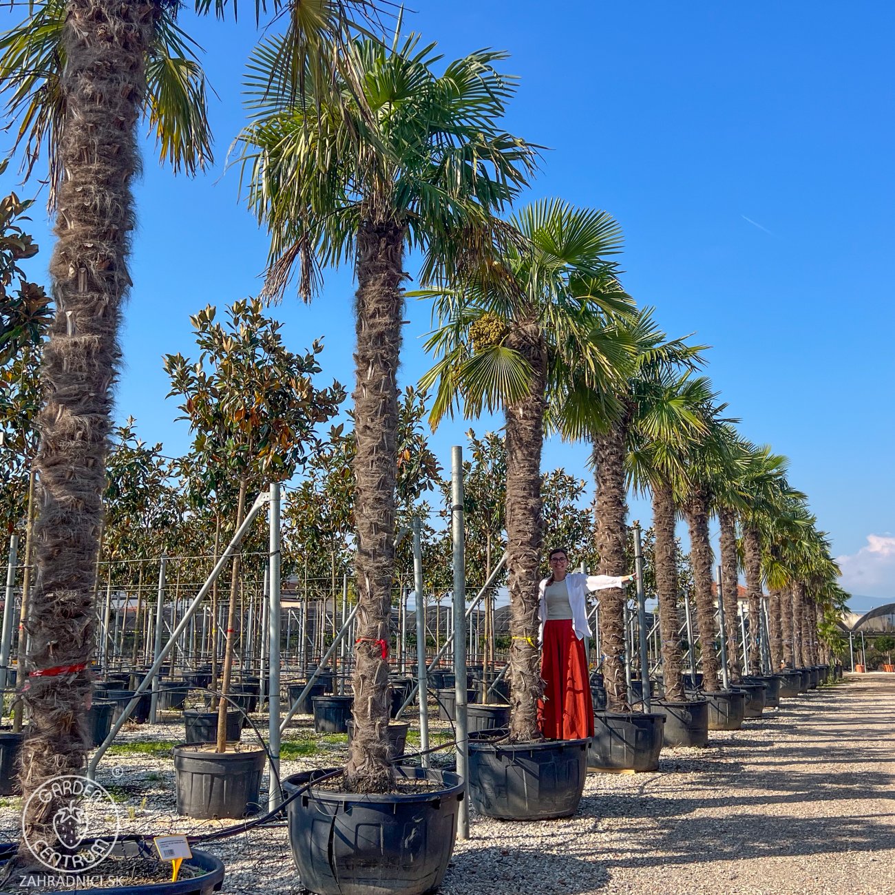 Kmeň tejto palmy je pokrytý hrubými, vyčnievajúcimi vláknami, ktoré ho úplne prekrývajú. Mladé rastliny a semenáčiky rastú zo začiatku viac do šírky než do výšky. Zo všetkých druhov trachycarpusov rastie "fortunei" najrýchlejšie, avšak v nádobách a v kvetináčoch rastie podstatne pomalšie ako vo voľnej prírode. Palmy pestované v nádobách majú ročný prírastok na kmeni zvyčajne okolo 10 cm. Trachycarpusy sú nenáročné na pôdu a dobre rastú hoci v tvrdej, ílovitej a kamenistej pôde, ale aj v ľahkej, mäkkej rašeline. Pri pestovaní rastlín v kvetináči je dobré ich sadiť do ľahšej pôdy, aby sa koreňový bal mohol ľahko rozložiť po celej ploche kvetináča.