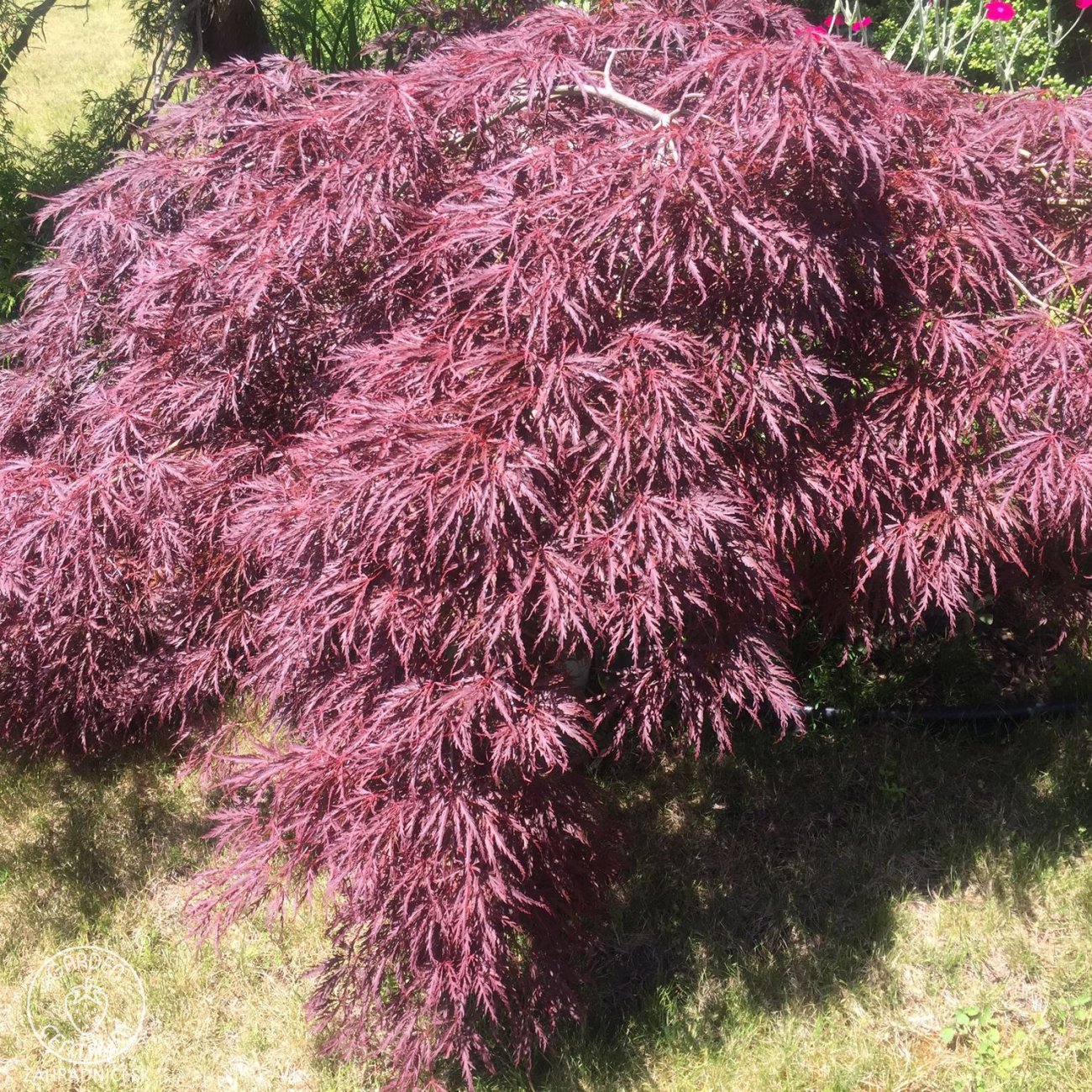 Acer palmatum ‘GARNET’ je krásny previsnutý japonský javor s hlboko laločnatými listami v sýtych červeno-rubínových odtieňoch. Farbu si udržiava počas celej sezóny a na jeseň ešte viac stmavne. Dorastá približne do 1,5–2 metrovej výšky a 2–3 metrovej šírky, vytvára širokú, kaskádovitú korunu. Najlepšie rastie na slnečnom až polotienistom mieste v priepustnej, mierne kyslej pôde so stálou vlhkosťou. Ideálny ako solitér, do skalky, japonskej záhrady alebo do väčšej nádoby.