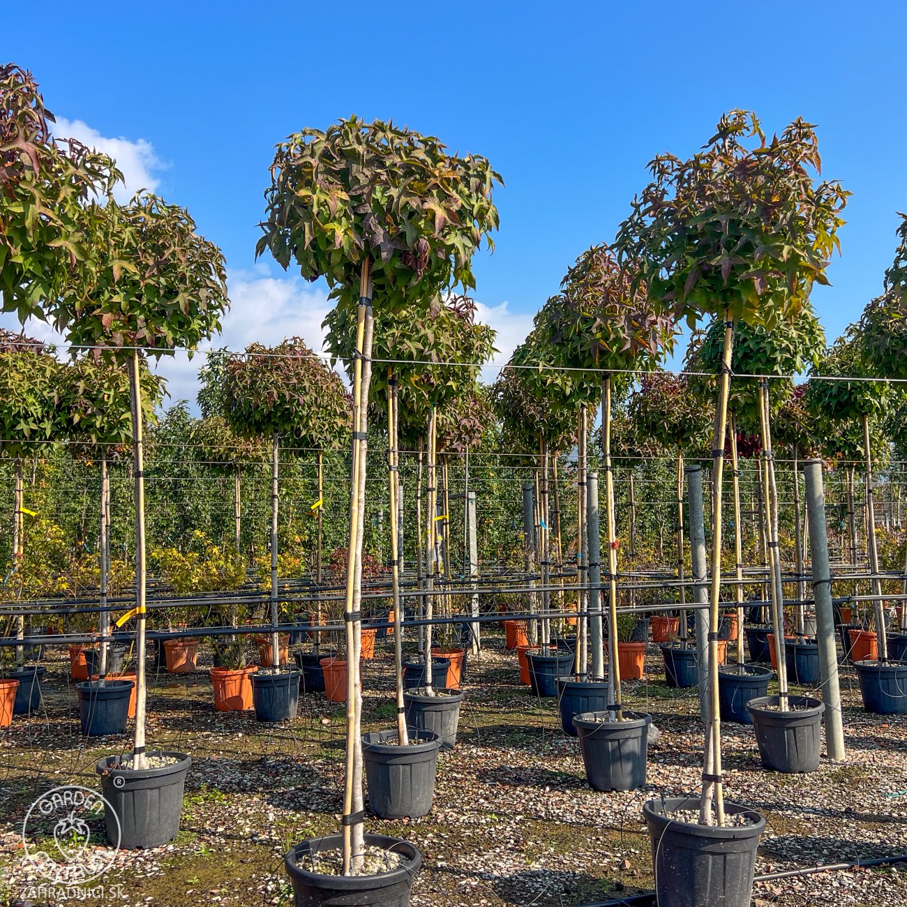 Ambrovník styraxový ´GUMBALL´ je malý, atraktívny strom, ktorý pochádza zo Severnej Ameriky. Strom dorastá do výšky cca 4 metrov a má pravidelnú, hustú korunu, ktorá tvorí dokonalú guľku. Má tmavo-zelené, lesklé listy, ktoré majú veľmi zaujímavý tvar a na jeseň menia svoju farbu na vínovo-červenú. Strom dobre rastie v priepustných, úrodných a mierne kyslých pôdach. Ideálne je slnečné stanovisko, prípadne polotieň. Ambrovník styraxový je mrazuvzdorný do -29°C. Počas vegetačného obdobia strom nevyžaduje žiadnu starostlivosť. Nádherne vynikne keď je vysadený v úzkych uličkách a v parkoch.