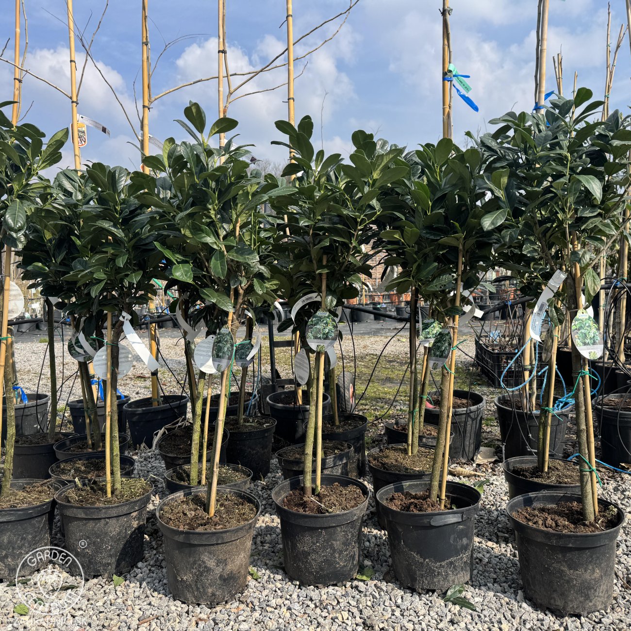 Vavrínovec lekársky ‘ETNA’ na kmienku predstavuje elegantnú a zároveň veľmi praktickú drevinu, ktorá vyniká hustou, guľovitou korunou a celoročným dekoratívnym efektom. Jeho lesklé, tmavozelené listy pôsobia sviežo aj počas zimy, pričom mladé výhonky zaujmú bronzovo-červeným nádychom. Práve táto farebná premena robí z rastliny zaujímavý prvok v každej záhrade či na terase.