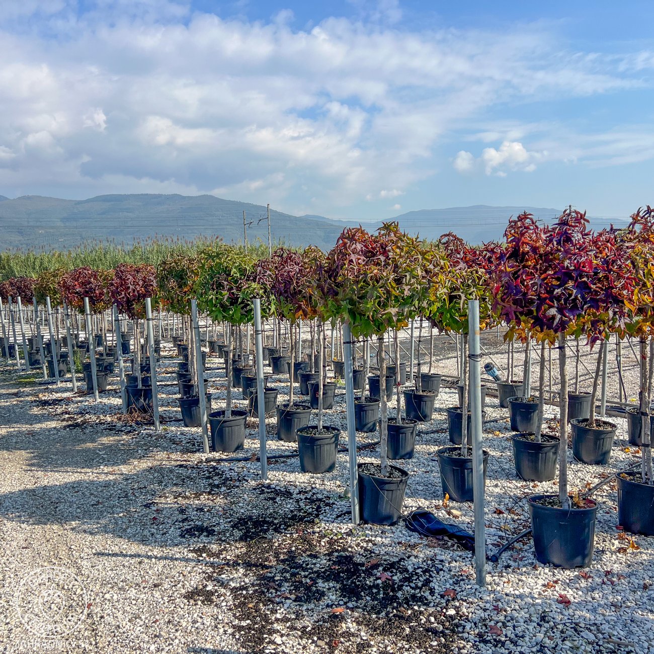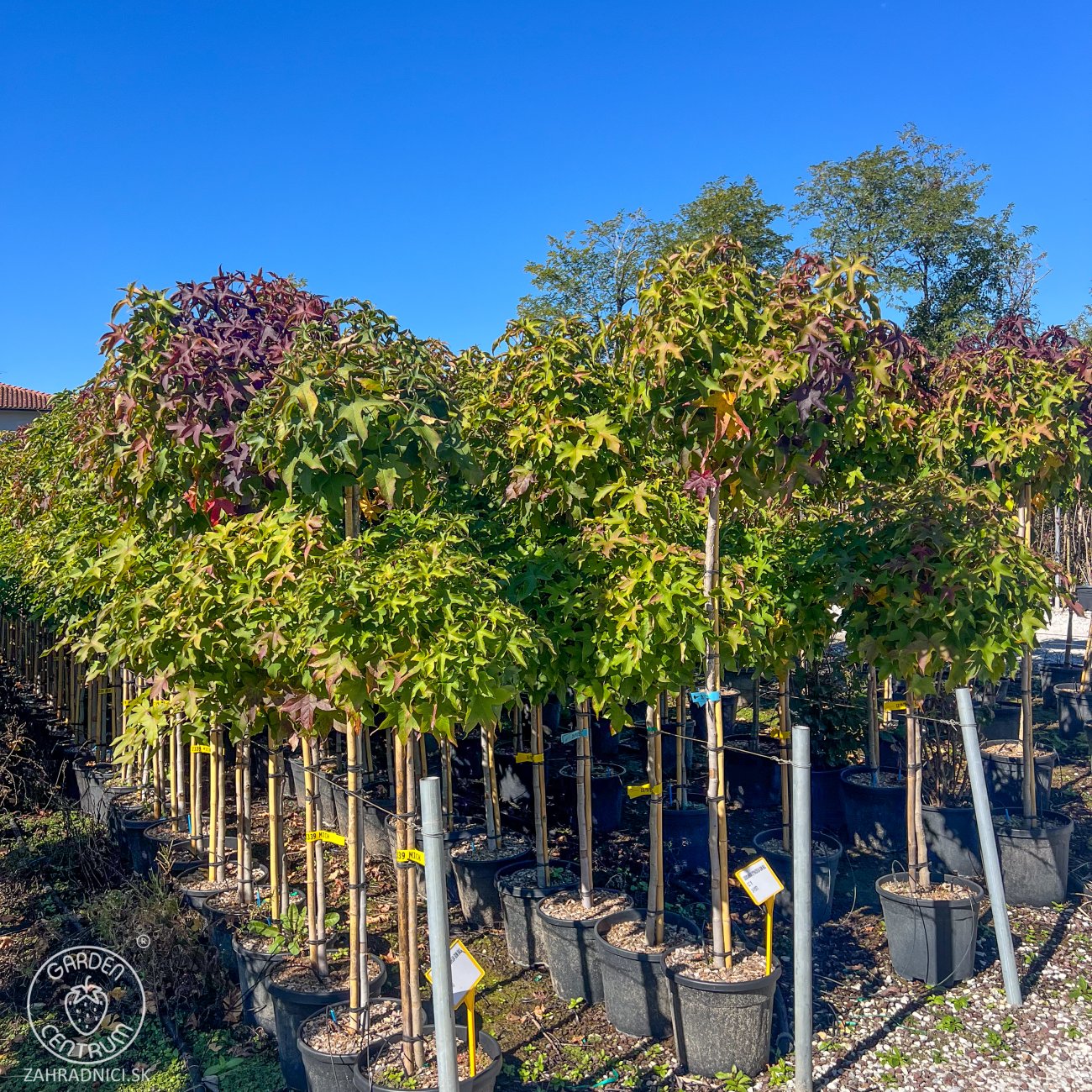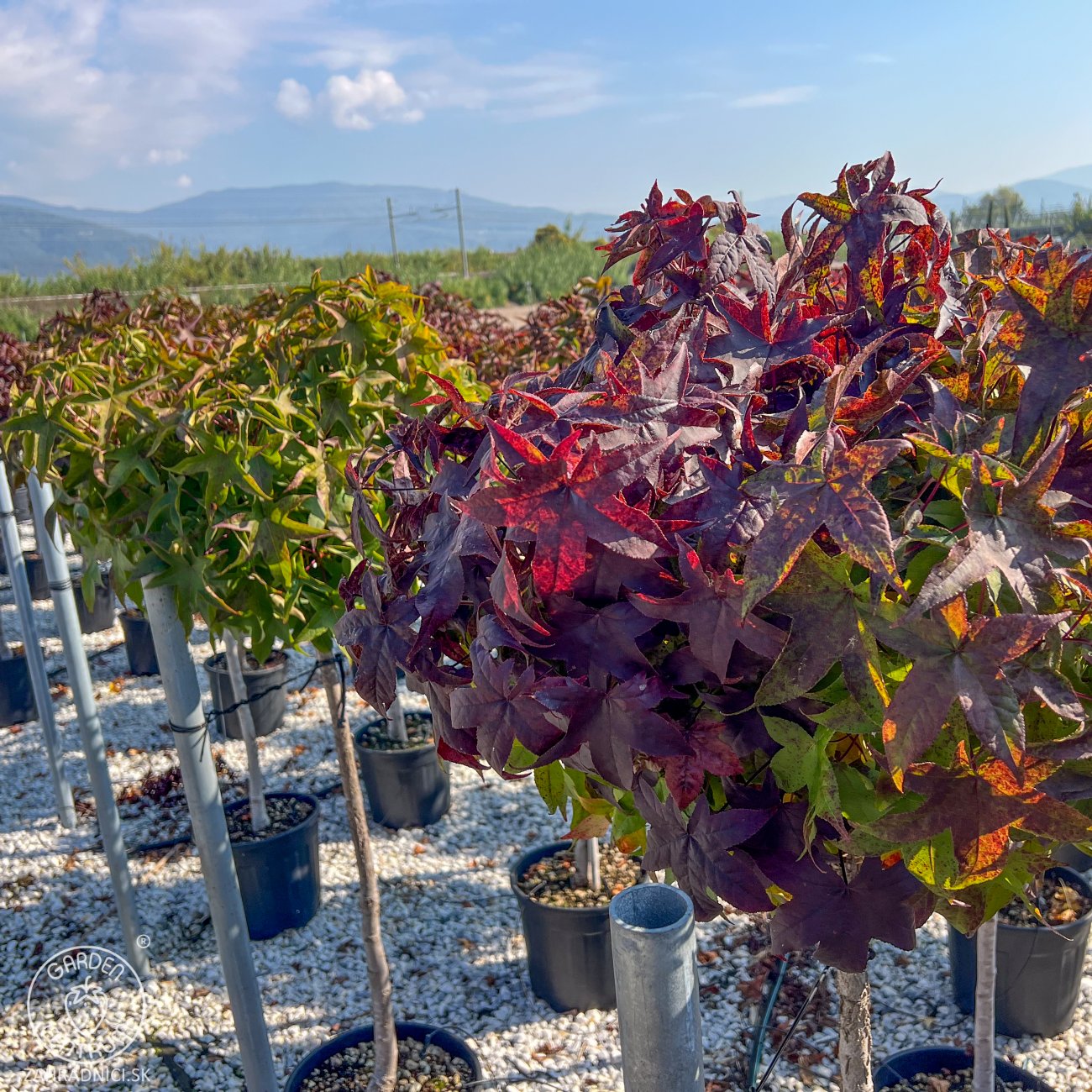 Ambrovník styraxový (Liquidambar styraciflua) ´GUMBALL´ - výška 140-160 cm, obvod kmeňa: 8/10 cm, kont. C18L - NA KMIENKU