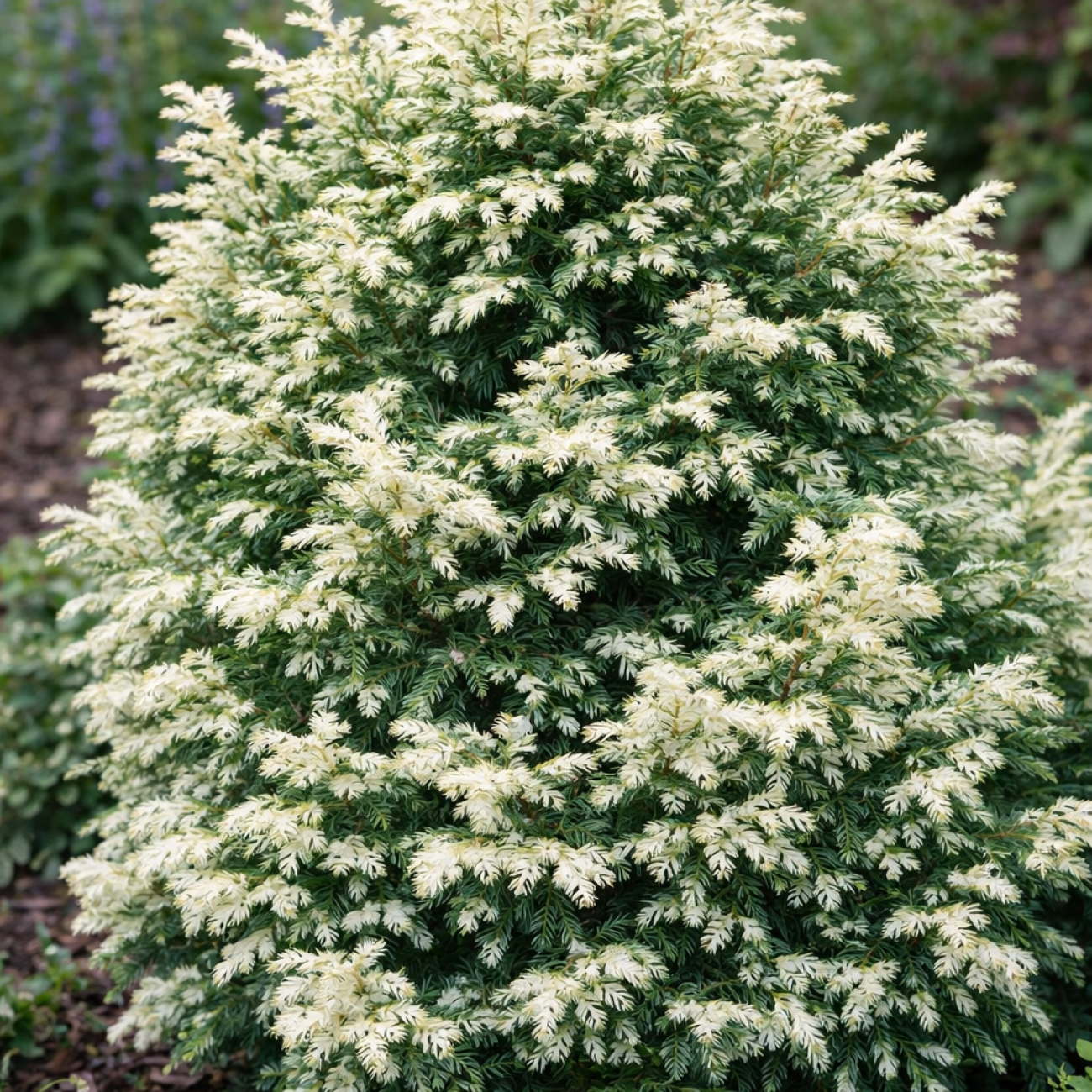 Jedľovec kanadský ´GENTSCH WHITE´ je jedinečný kultivar jedľovca, ktorý očarí jemným, krémovo-bielym sfarbením končekov ihličia. Tento stredne veľký ihličnan je ideálny pre záhradné výsadby, kde dokáže vytvoriť jemný kontrast a pridať svetlý akcent medzi iné rastliny. Dorastá do výšky 1,5 - 2 metrov s hustým, kužeľovitým tvarom, čo z neho robí ideálny doplnok do menších záhrad a na miesta, kde je potrebná jemná štruktúra. Ihličie má svetlozelenú farbu s krémovo-bielymi končekmi, ktoré sa najvýraznejšie prejavujú v zimných mesiacoch, čím dodávajú záhrade jedinečný vizuálny efekt. Tsuga canadensis sa najlepšie cíti na polotienistom až tienistom stanovisku, čo z nej robí ideálny ihličnan do tieňa. Chráňte je pred priamym letným slnkom. Preferuje vlhkejšie, dobre priepustné pôdy.
