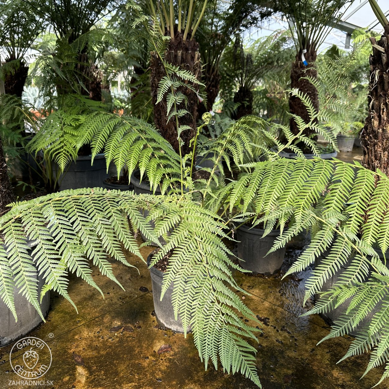 Diksónia antarktická, známa aj ako stromová papraď, patrí medzi najkrajšie paprade na svete. Rastlina vytvára výrazný, palme podobný vzhľad s mohutným, hnedým kmienkom obrasteným zvyškami starých listov a širokou korunou veľkých, jemne delených listov. V záhrade či na terase pôsobí exoticky, elegantne a okamžite pritiahne pozornosť. Dicksonia antarctica rastie pomaly, no je veľmi dlhoveká. Najlepšie sa jej darí na polotienistom až tienistom stanovišti, kde je chránená pred prudkým slnkom a vetrom. Vyžaduje vlhkú, humóznu a priepustnú pôdu, ktorá nikdy úplne nevysychá. Je citlivá na presušenie koreňového balu aj kmeňa, preto je dôležité pravidelné zavlažovanie a rosenie listov počas teplých mesiacov.