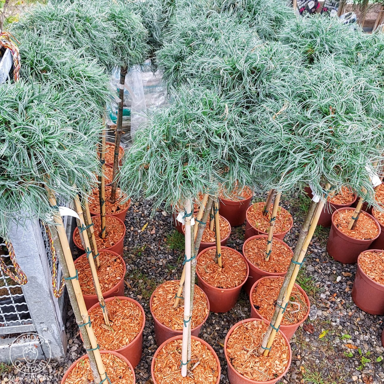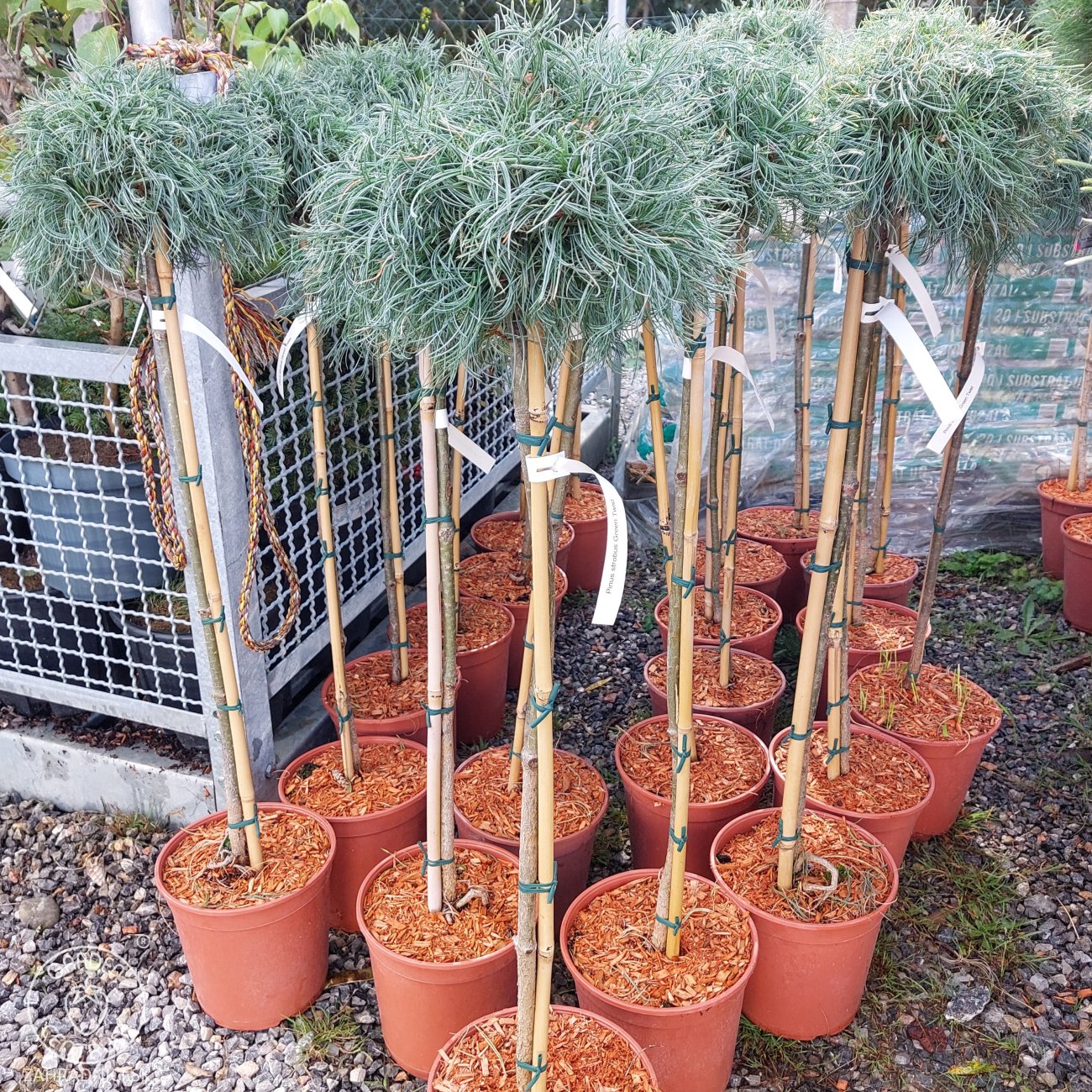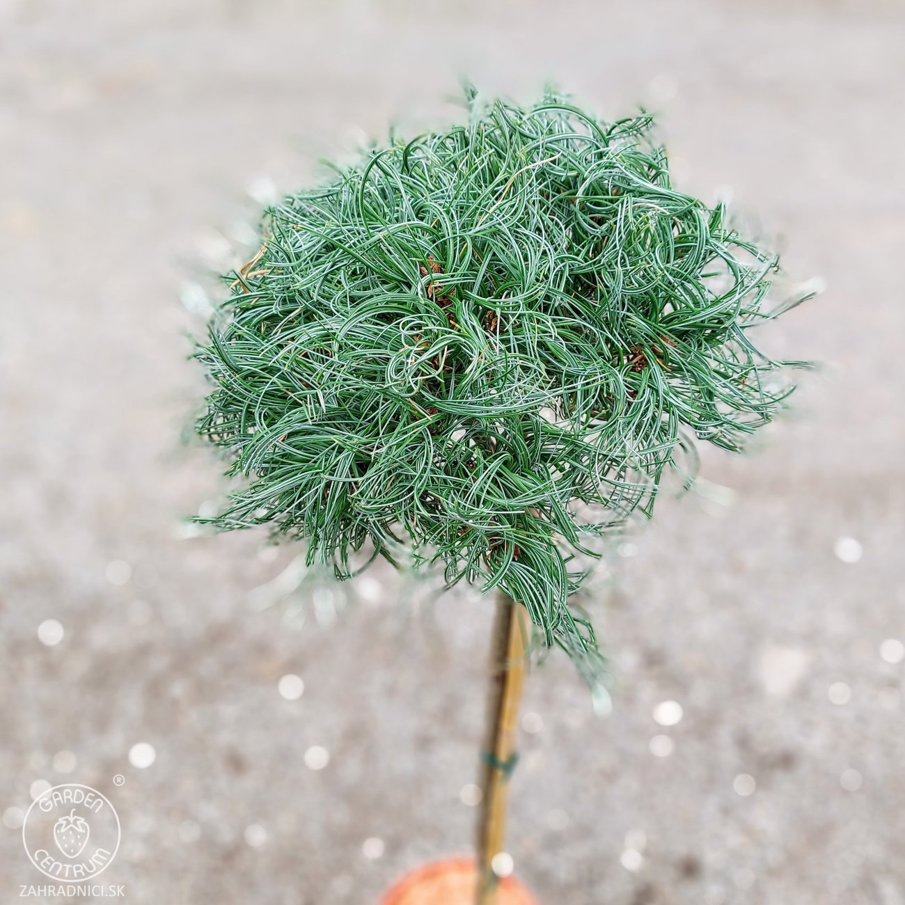 Pinus strobus ´Green Twist´ na kmienku je jedinečná okrasná borovica s výrazným dekoratívnym efektom. Táto odroda americkej borovice hladkej zaujme najmä svojím jemným, dlhým a skrúteným ihličím v sviežej modrozelenej farbe. Vďaka štepeniu na kmienok vytvára atraktívnu korunu s nepravidelným, mierne "strapatým" vzhľadom, ktorý pôsobí prirodzene, vzdušne a moderne zároveň.