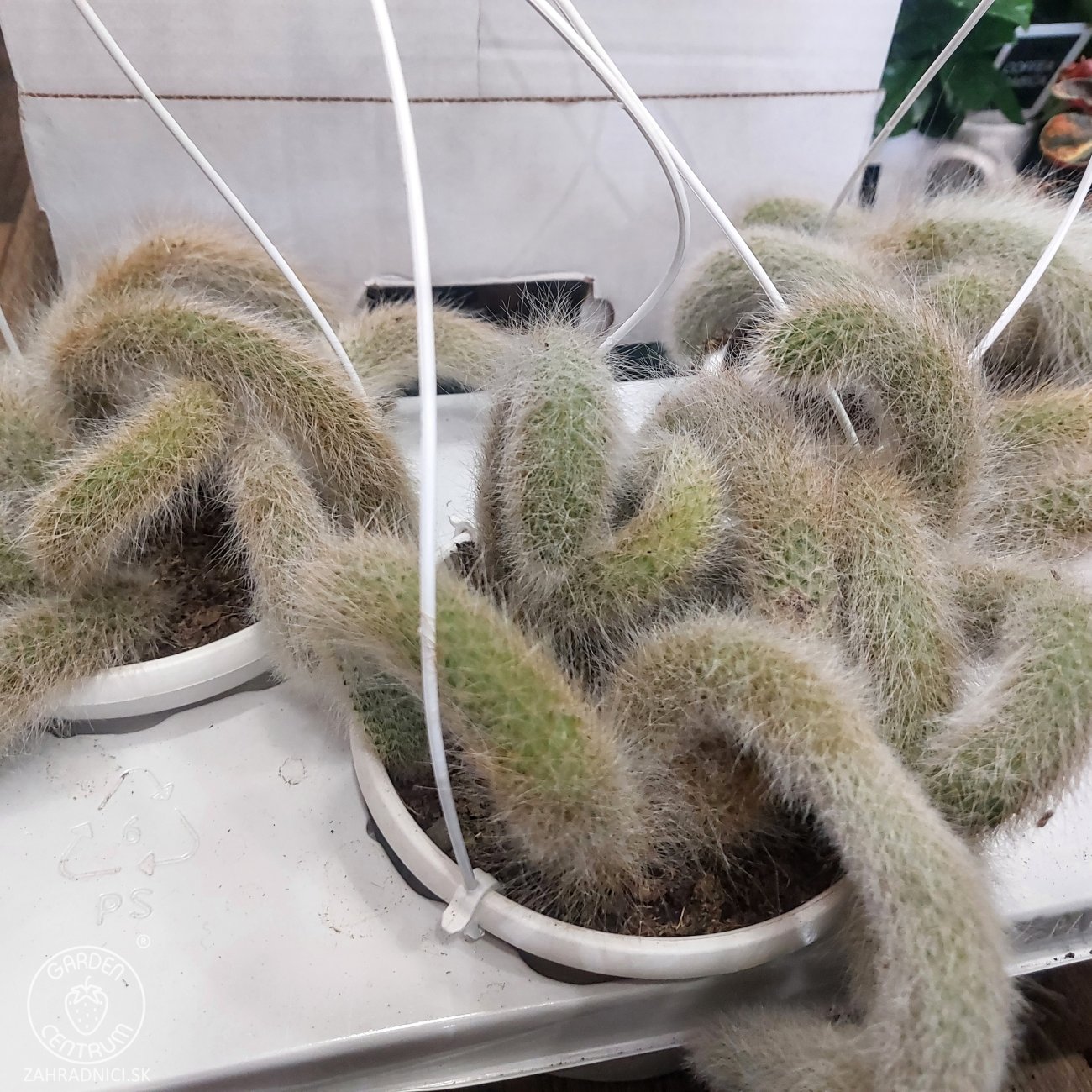 Hildewintera colademononis, známa aj ako „Opičí chvost“ (Monkey Tail Cactus), je výnimočný previsnutý kaktus, ktorý okamžite zaujme svojim netradičným vzhľadom. Jeho dlhé, mäkko ochlpené stonky pripomínajú huňatý chvost opice – odtiaľ aj jeho originálny názov. Patrí medzi obľúbené kaktusy nielen pre svoju zaujímavú formu, ale aj pre nádherné ružovo-červené kvety, ktoré kvitnú počas teplejších mesiacov.