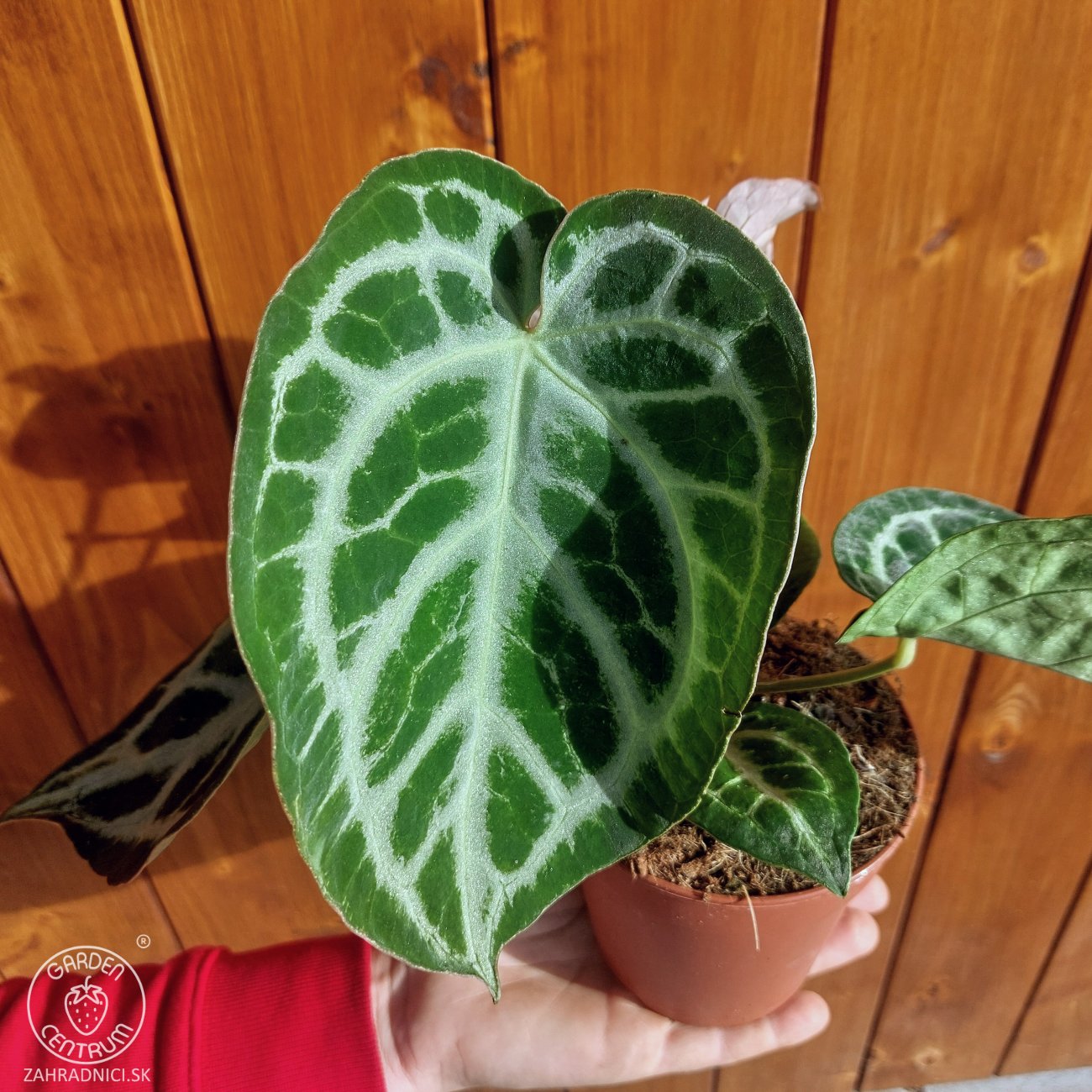 Antúria ´SILVER BLUSH´ je jedinečná izbová rastlina, ktorá zaujme svojím netradičným olistením a elegantným vzhľadom. Na rozdiel od klasických antúrií, ktoré sú známe najmä svojimi kvetmi, táto odroda vyniká predovšetkým dekoratívnymi listami – tmavozelenými, s výrazným strieborným žilkovaním a zamatovým povrchom. Vďaka tomu pôsobí luxusne a zároveň moderne, čím sa skvele hodí do štýlových interiérov. Antúria patrí medzi kompaktnejšie izbové rastliny, ktoré dorastajú do strednej výšky a šírky, takže je ideálna na stolíky, poličky alebo ako súčasť zelenej kolekcie v priestore. Pochádza z tropických oblastí, a preto vyžaduje vyššiu vlhkosť vzduchu a nepriame svetlo.