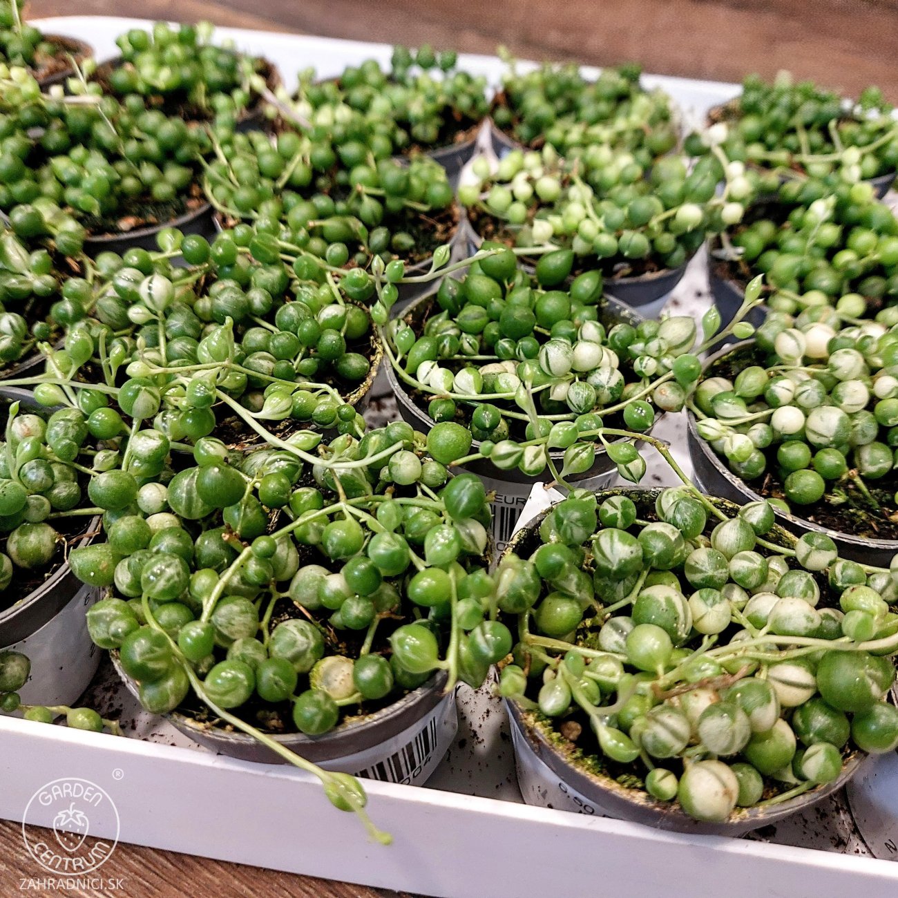 Starček ´VARIEGATA´ je pôvabná sukulentná rastlina, ktorá zaujme svojim jedinečným vzhľadom – tenké, previsnuté stonky sú pokryté guľatými, zeleno-bielo prúžkovanými listami, ktoré pripomínajú malé zelené perly. Táto variácia klasického starčeka je obzvlášť obľúbená pre svoj dekoratívny efekt a nenáročnú starostlivosť ako izbová rastlina.