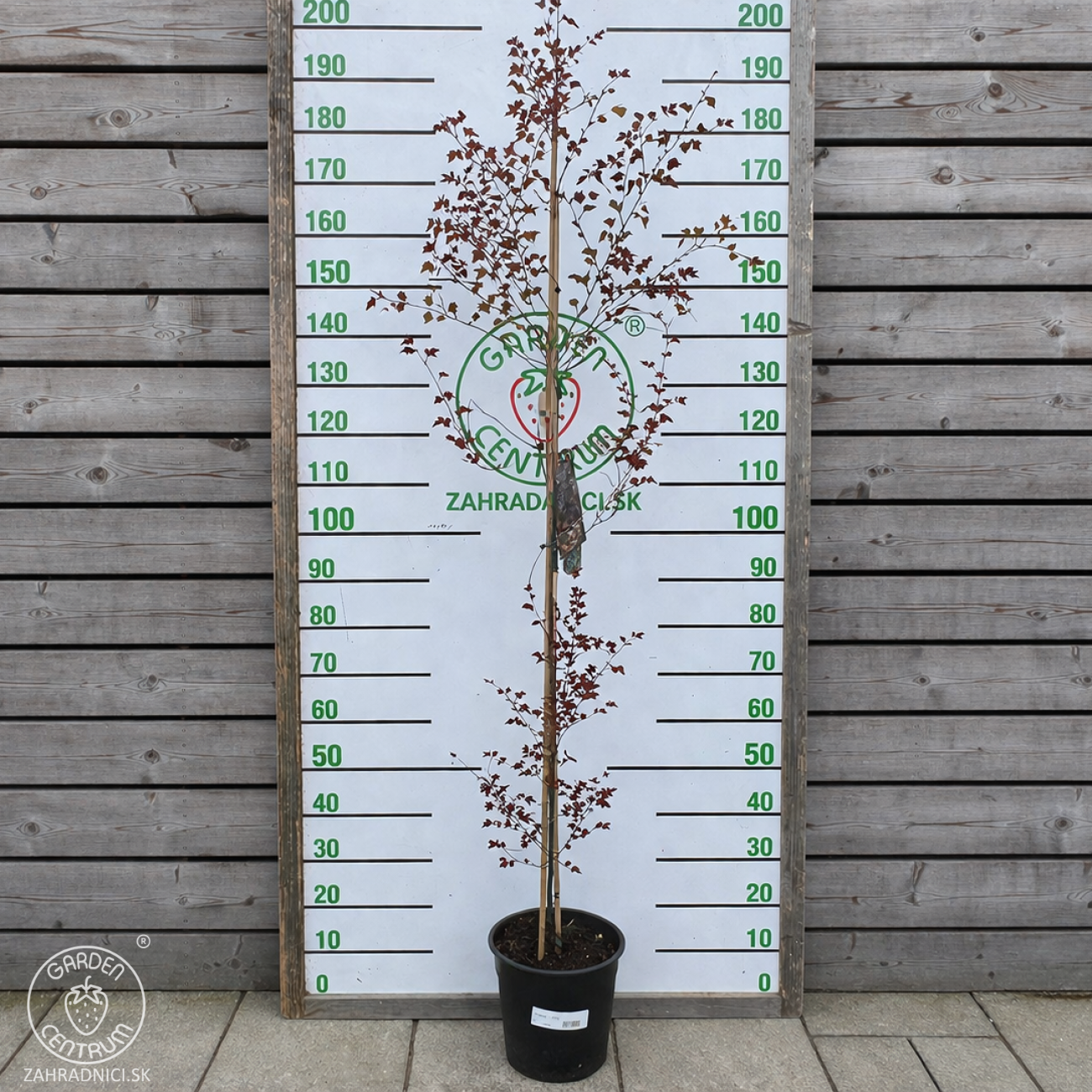 Breza previsnutá ´ROYAL FROST´ je výnimočný okrasný strom, ktorý spája jemnosť klasickej brezy s atraktívnym sfarbením listov. Mladé listy majú výrazný purpurovo-červený odtieň, ktorý sa počas sezóny mení na tmavšiu bordovú až bronzovú farbu. Typická biela kôra vytvára nádherný kontrast s tmavým olistením, vďaka čomu strom pôsobí veľmi dekoratívne počas celého roka. Koruna je vzdušná, mierne previsnutá a elegantná, čo dodáva stromu ľahký a prirodzený vzhľad.