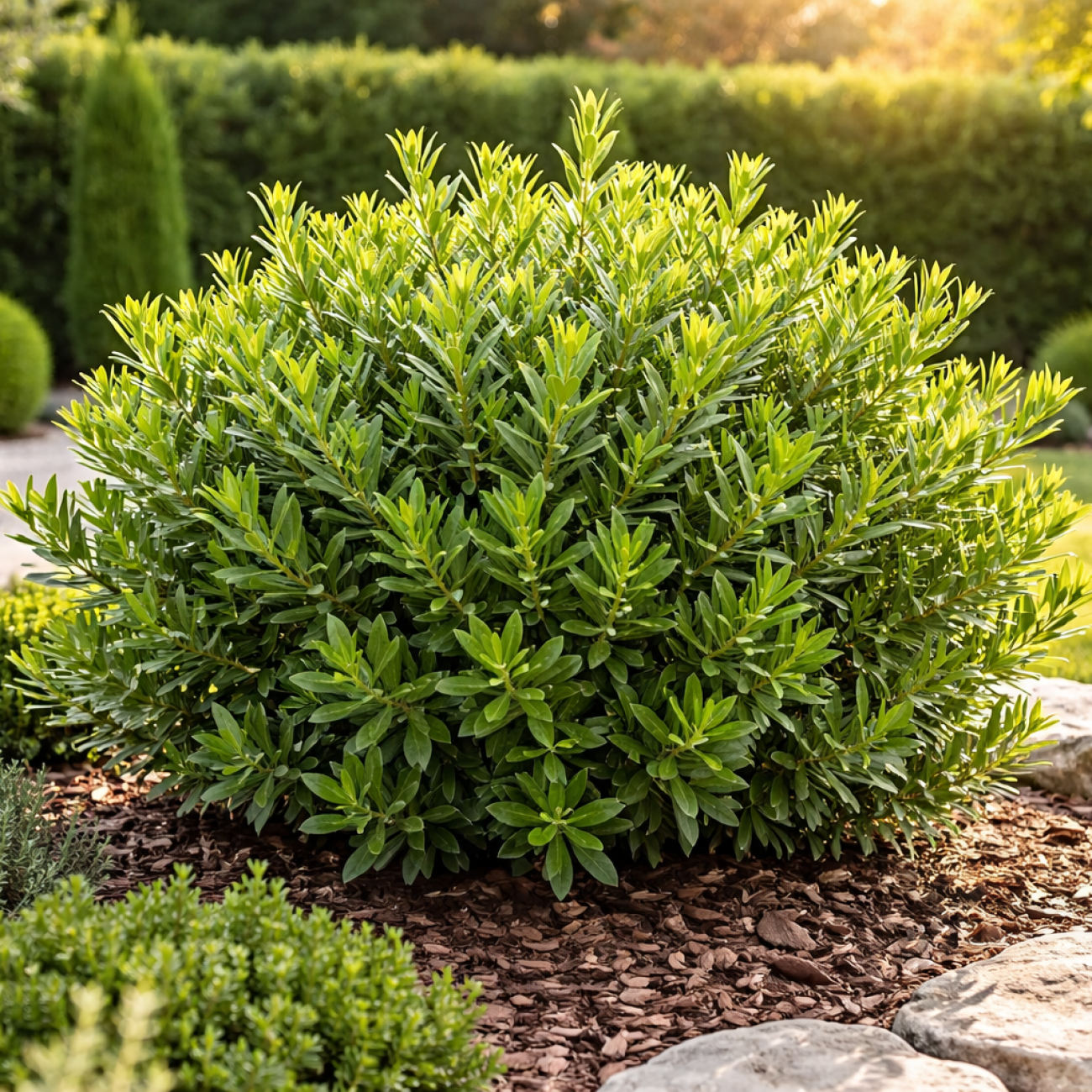 Phillyrea angustifolia ´GREEN UP´ je skvelou voľbou pre každého, kto hľadá elegantnú, odolnú a celoročne dekoratívnu rastlinu do záhrady alebo na terasu.