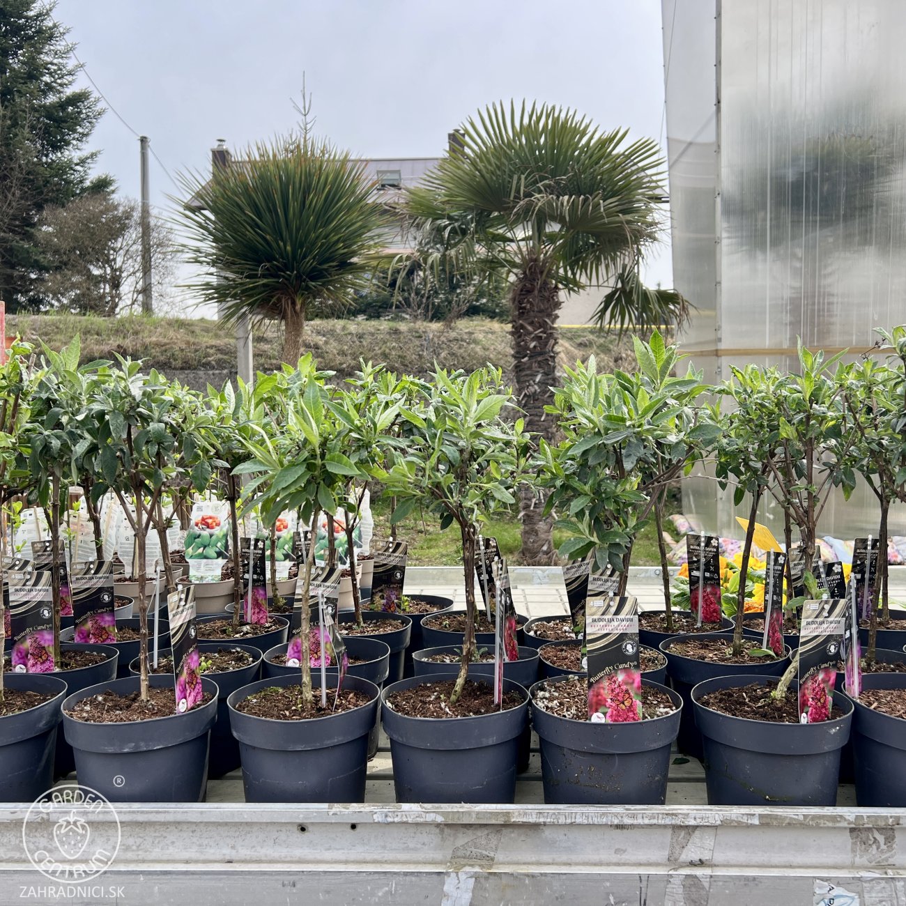 Budleja dávidova BUTTERFLY CANDY® LITTLE LILA na kmienku je kompaktná a veľmi dekoratívna odroda, ktorá zaujme svojimi jemnými lila (levanduľovými) kvetmi a elegantným tvarom. Vďaka pestovaniu na kmienku pôsobí upravene a štýlovo, čo ju robí ideálnou voľbou pre menšie záhrady, terasy či balkóny. Počas kvitnutia sa stáva magnetom pre motýle, včely a ďalších opeľovačov.