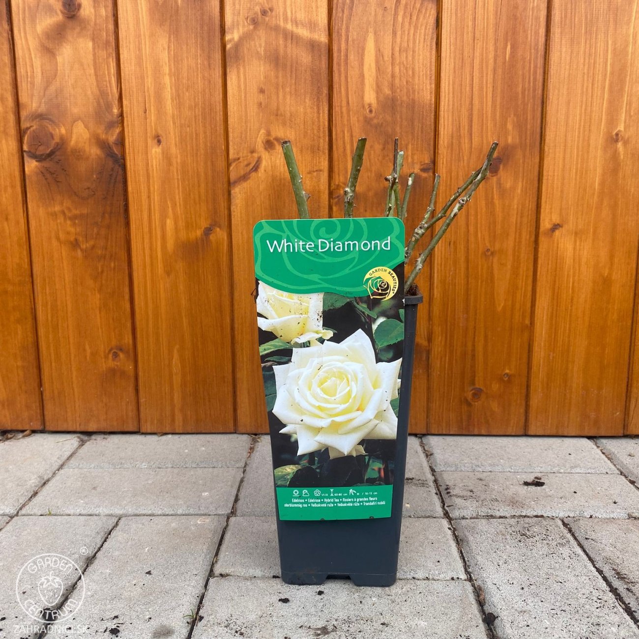 Ruža ‘White Diamond’ je nádherná veľkokvetá ruža (čajohybrid), ktorá zaujme svojimi veľkými, plnými snehobielymi kvetmi. Vďaka svojej čistej farbe pôsobí veľmi elegantne a nadčasovo, čím sa hodí do každej záhrady aj k moderným výsadbám.