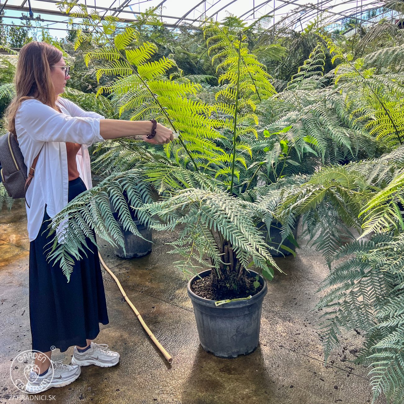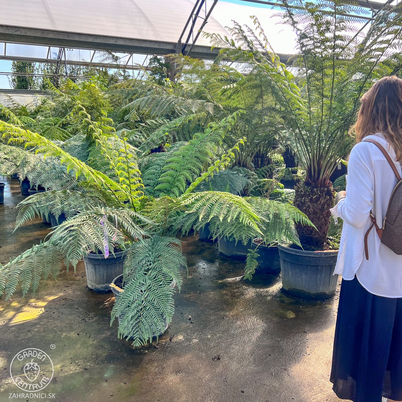 Diksónia antarktická (Dicksonia antarctica), známa aj ako stromová papraď, je fascinujúca a odolná rastlina pochádzajúca z Austrálie a Tasmánie. Vytvára hrubý, drevnatý kmeň pokrytý zvyškami starých listov, z ktorého vyrastajú veľké, perovito delené listy s jemnou textúrou. Táto papraď rastie pomaly, ročne dorastie približne 5 – 10 cm kmeňa, no v priaznivých podmienkach môže dorásť až do výšky 6 metrov. Husté, oblúkovité listy môžu dosahovať dĺžku až 2,5 metra, čím vytvárajú nádhernú tropickú korunu.