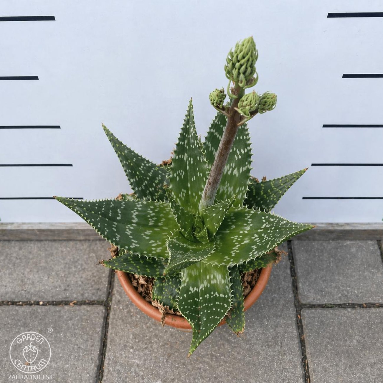 Aloe maculata, známa aj ako Aloe saponaria, patrí medzi obľúbené sukulenty do bytu, ktoré zaujmú svojimi škvrnitými listami a nenáročnou starostlivosťou. V tejto veľkosti ide o už pekne vzrastlú rastlinu, ktorá okamžite vytvorí výrazný dekoratívny prvok v interiéri aj na terase.