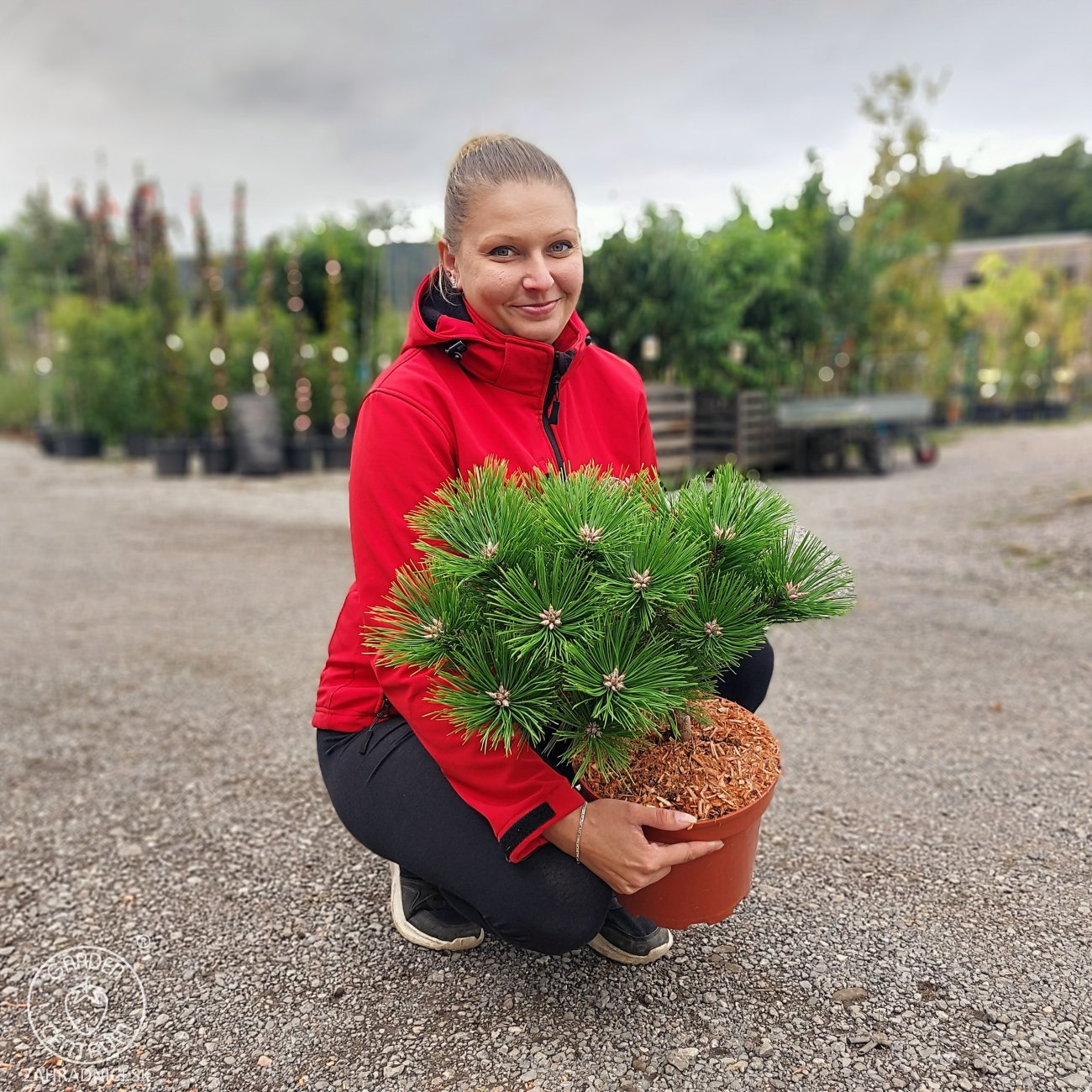 Borovica hustokvetá ´LOW GLOW´ je trpasličia odroda s veľmi pomalým, kompaktným rastom. Dorastá približne do výšky 1,50-2 m a šírky 1-1,5 m, pričom si prirodzene udržiava hustý, guľovitý až plocho guľovitý tvar bez potreby tvarovania. Ihličie je stredne dlhé, jemné, sýtozelené a rastie v pároch, čo rastline dodáva elegantný vzhľad počas celého roka.