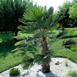 Palma konopná (Trachycarpus wagnerianus) – výška kmeňa 10-15 cm, celková výška: 40-60 cm, kont. C10L (-19°C)